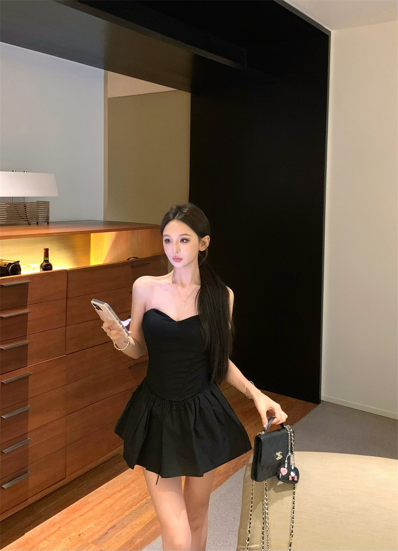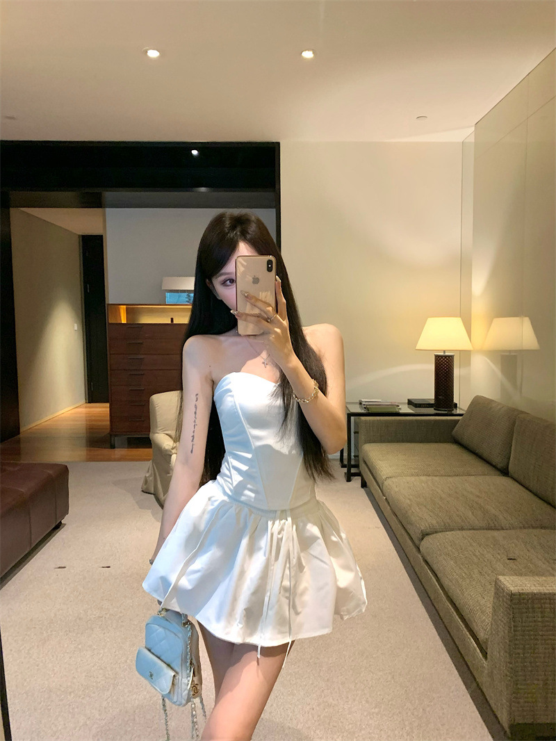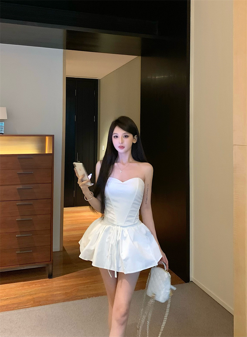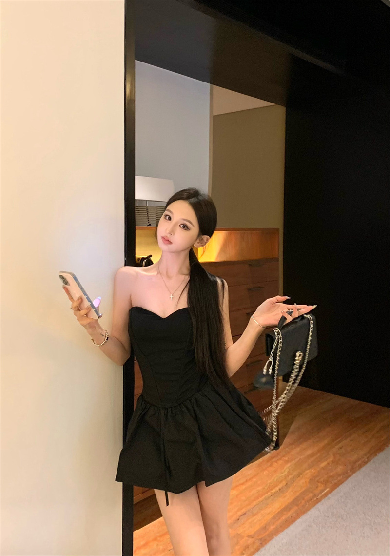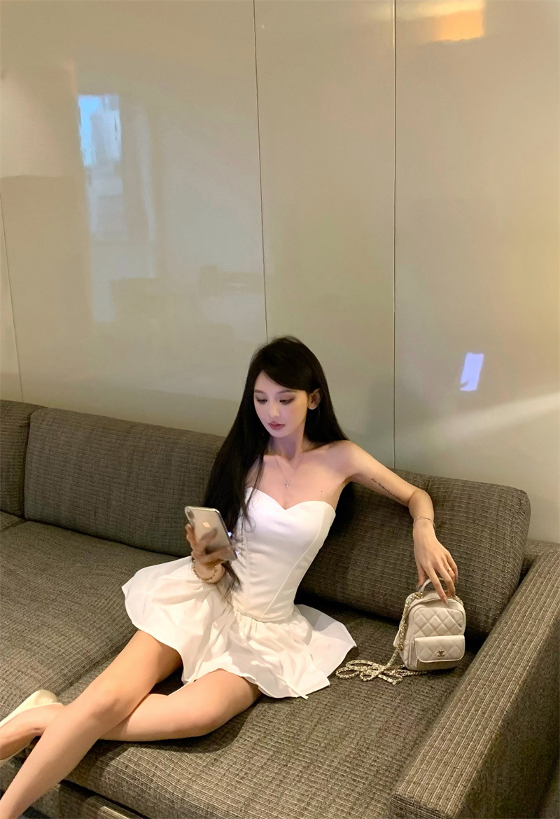 투피스 스커트 세트, 여름 패션 핫걸 피쉬본 튜브탑, 민소매 탑, 여성용 퍼프 스커트 및 치마바지스토어 가기