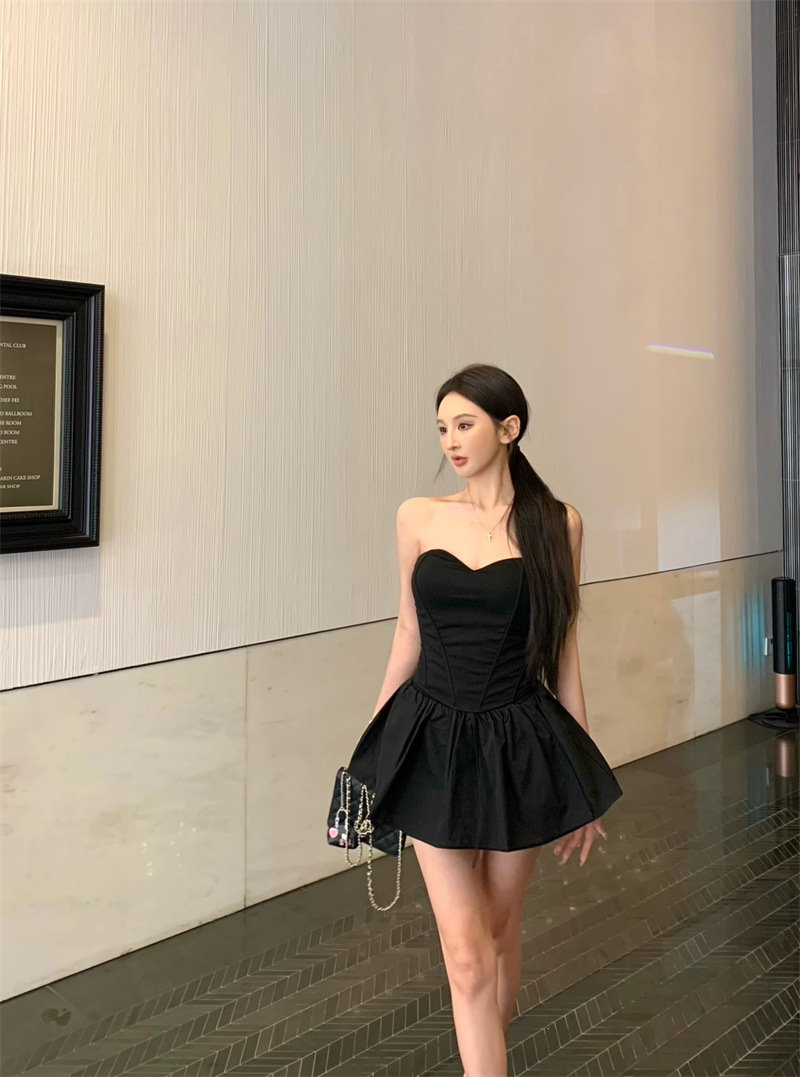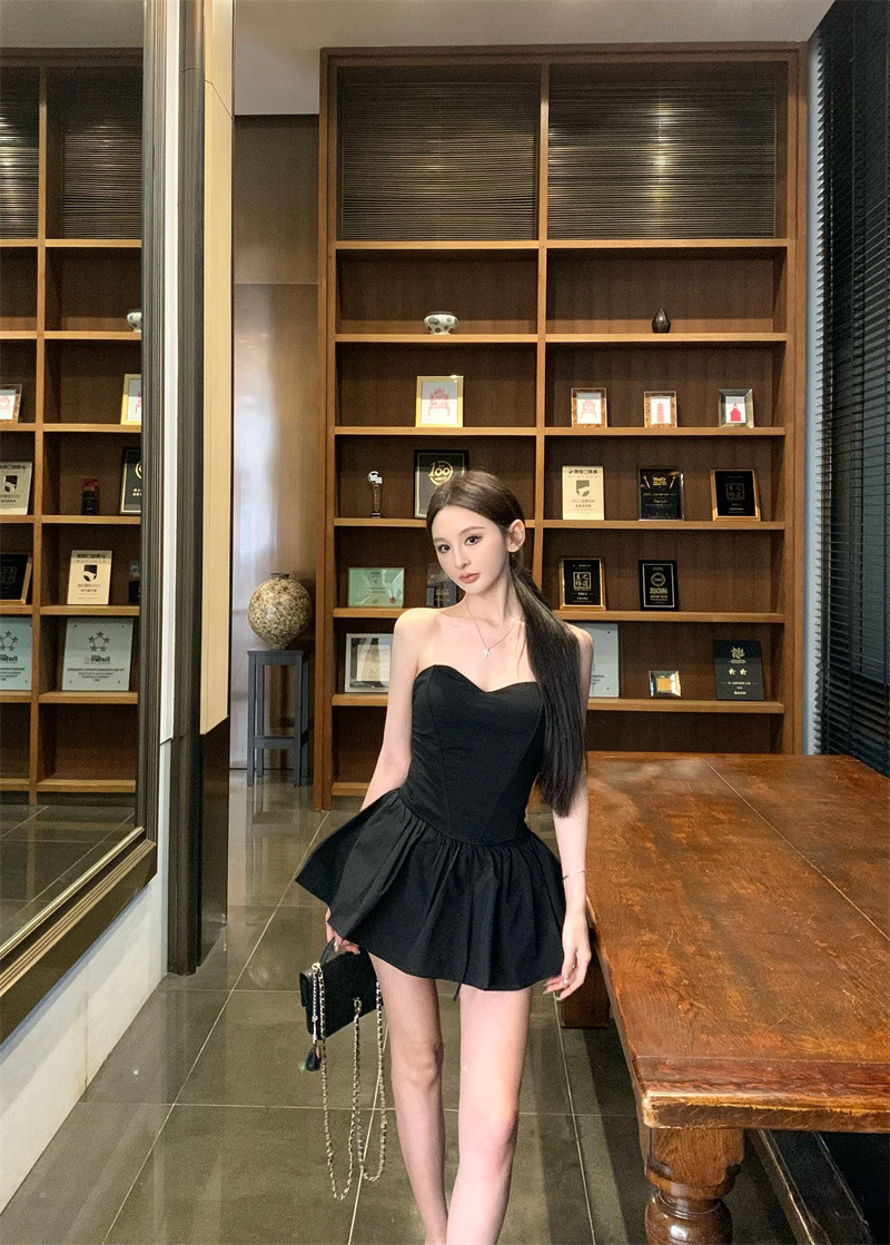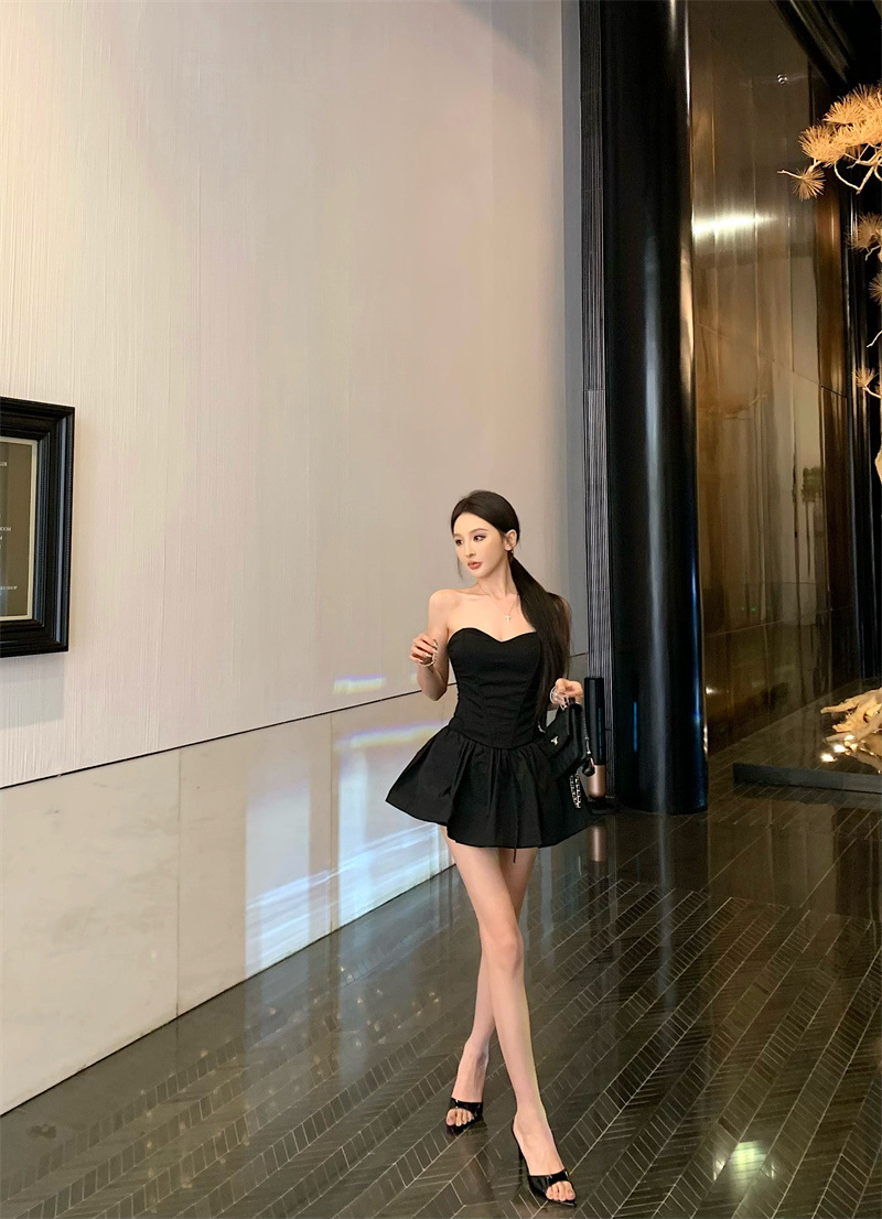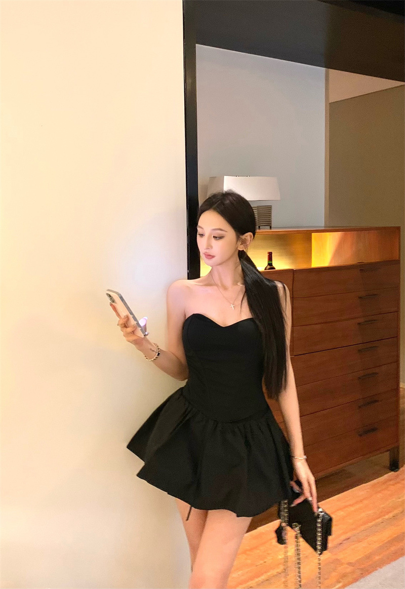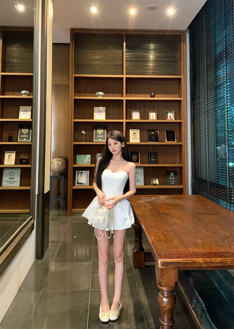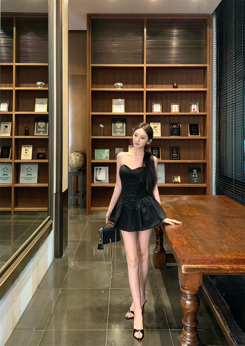 투피스 스커트 세트, 여름 패션 핫걸 피쉬본 튜브탑, 민소매 탑, 여성용 퍼프 스커트 및 치마바지스토어 가기