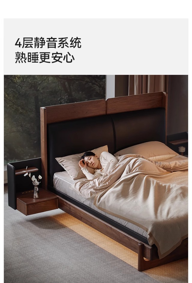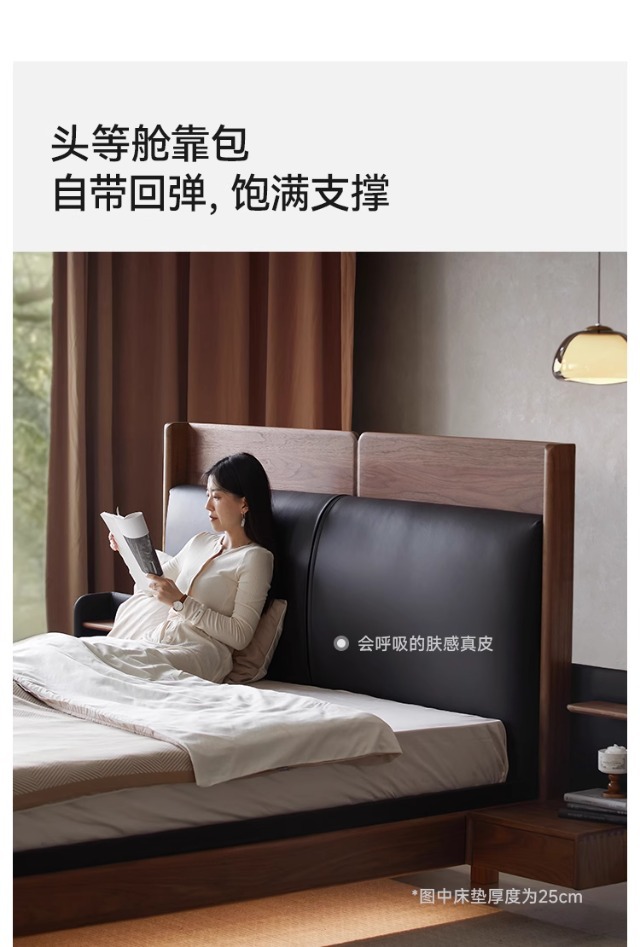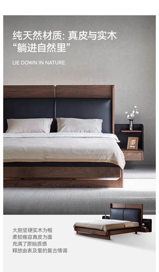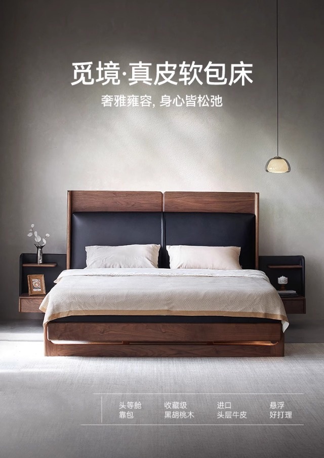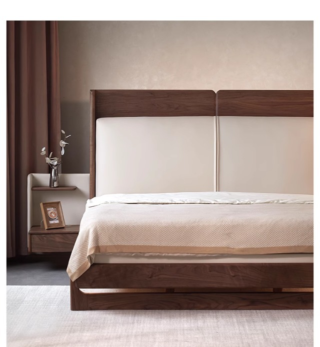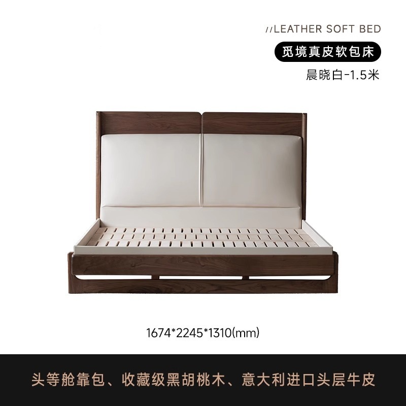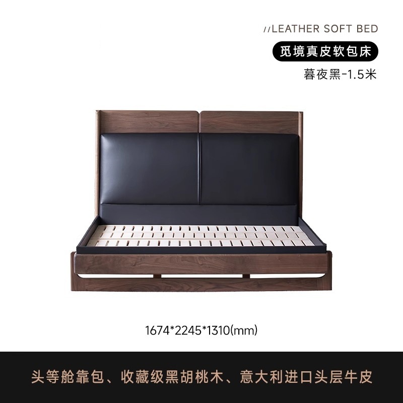 북미 검은 호두나무 중세 단단한 나무 침대 이탈리아 미니멀리스트 가죽 마스터 침실 서스펜션 소프트 침대스토어 가기