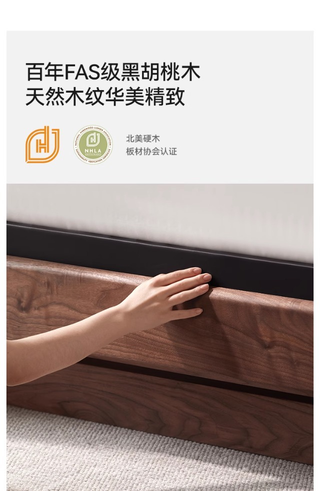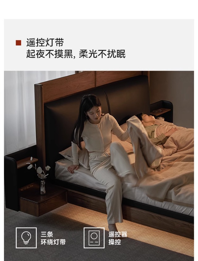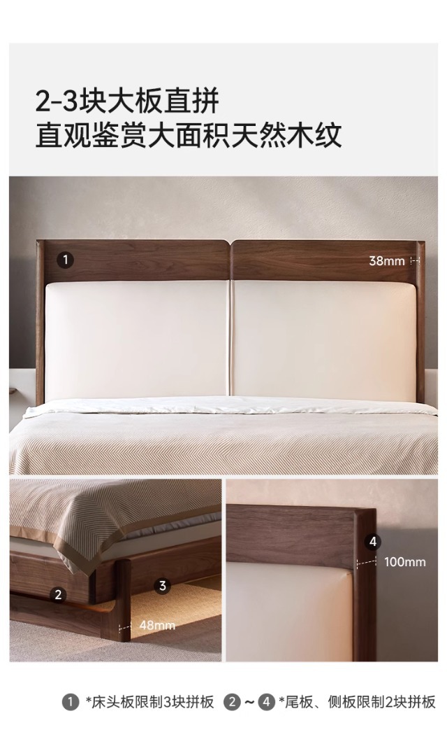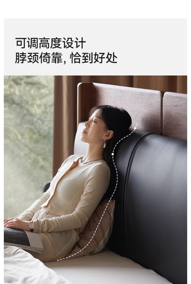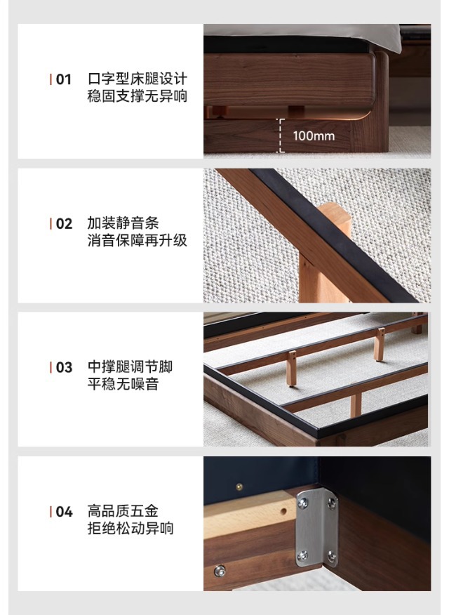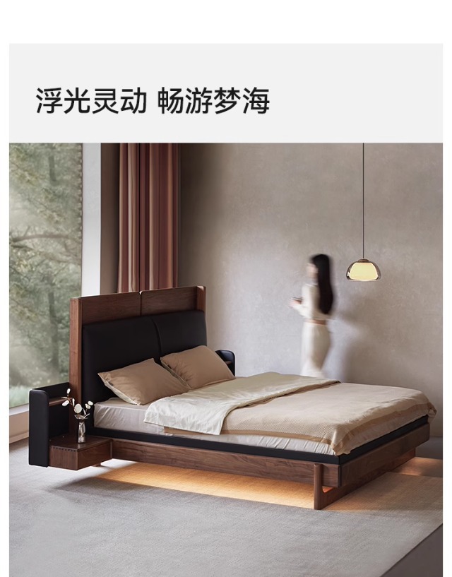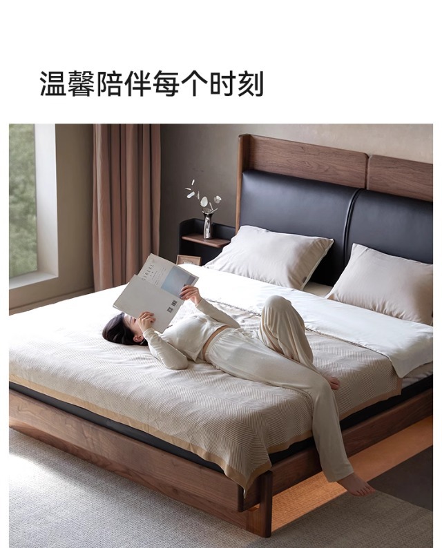 북미 검은 호두나무 중세 단단한 나무 침대 이탈리아 미니멀리스트 가죽 마스터 침실 서스펜션 소프트 침대스토어 가기