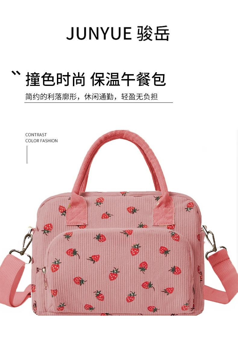 아마존 인기 도시락 가방, 코듀로이 대용량 보온/보냉 가방, 학생 도시락 가방, 해외 직구 피크닉 가방