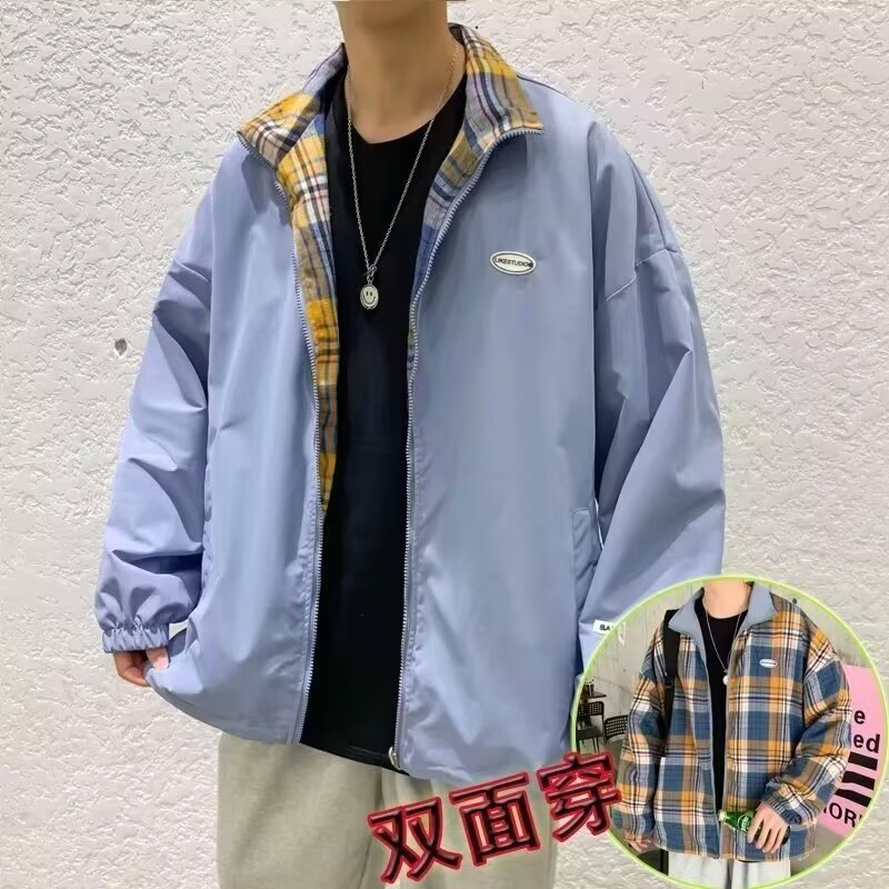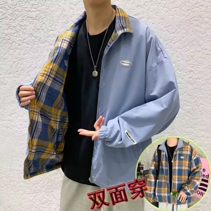 남성용 아메리칸 트렌디 브랜드 리버시블 재킷 2024 봄 작업복 재킷 잘 생긴 격자 무늬 봄, 가을 야구 유니폼스토어 가기