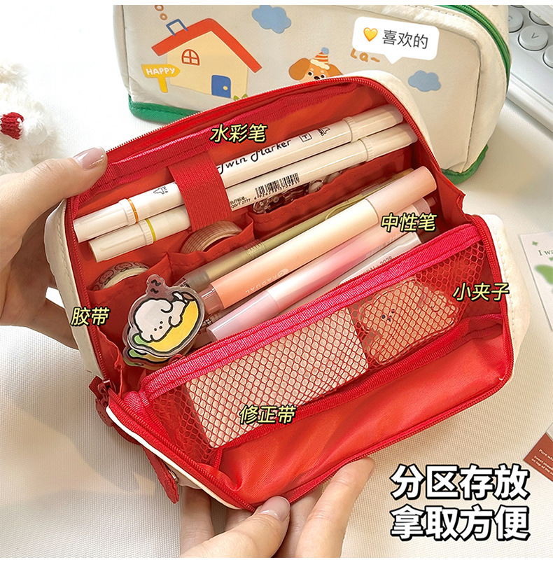 만화 컬러 블록 연필 가방, 고급스러운 스타일의 캔디 연필 상자, 대용량 문구 상자, 틈새 스타일 연필 가방