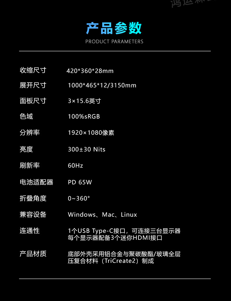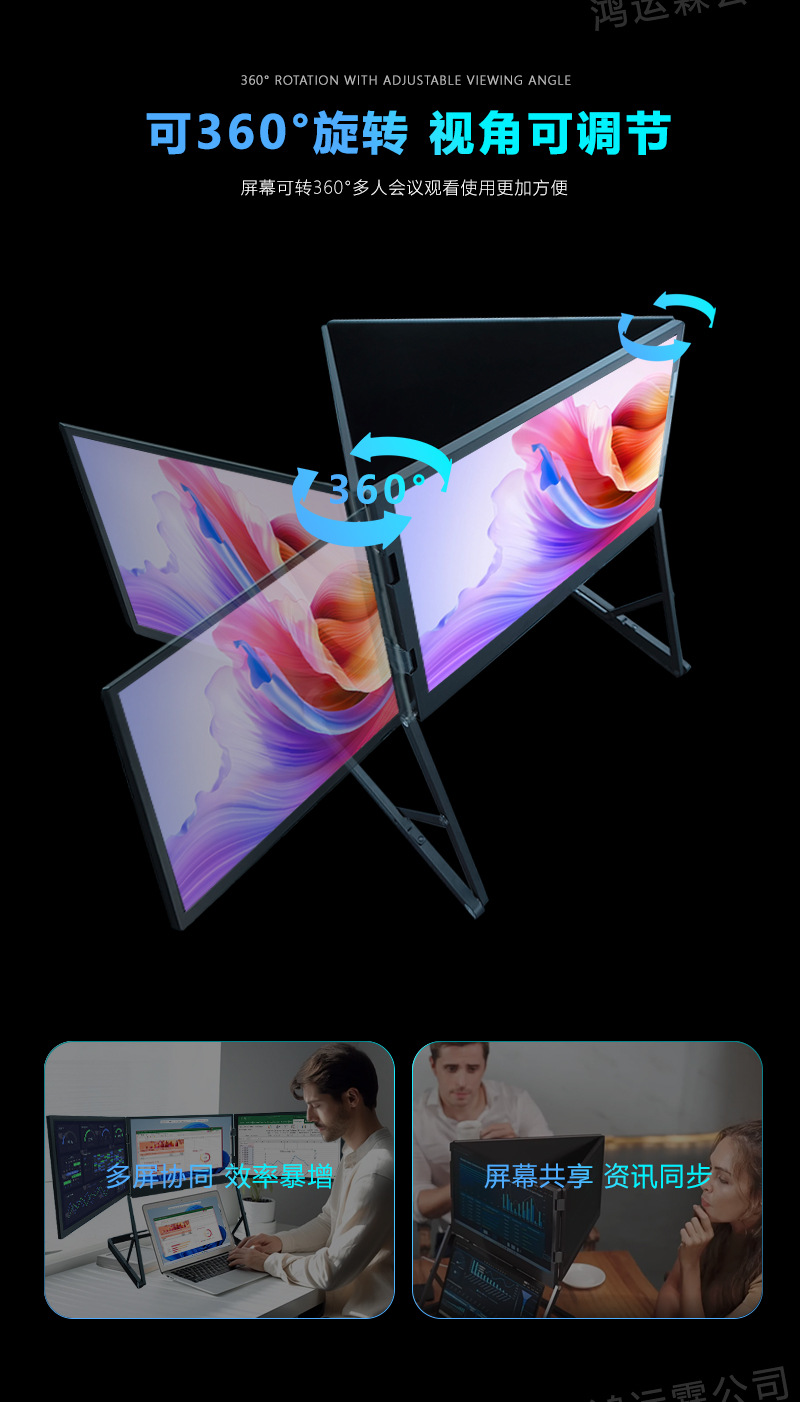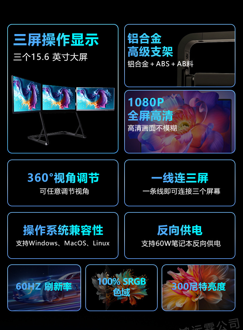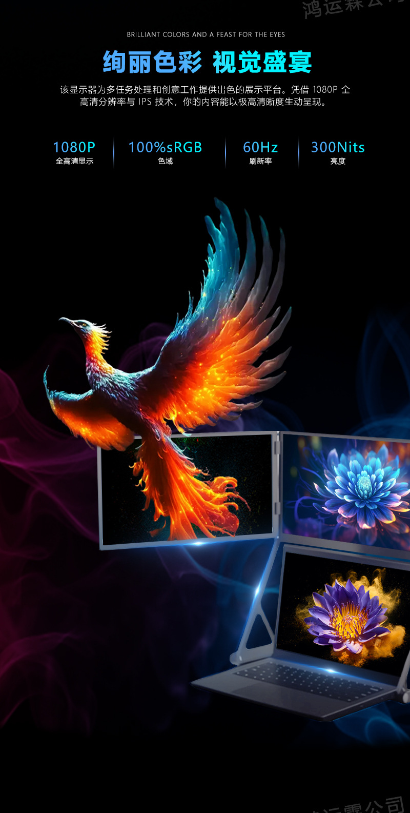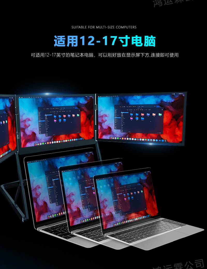便携式三屏显示器15.6寸电脑笔记本手机扩展switch/ps4游戏显示屏拓展显示器显示器笔记本拓展显示器笔记本拓展显示屏