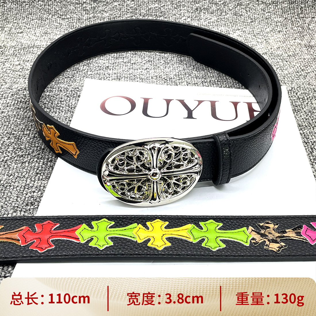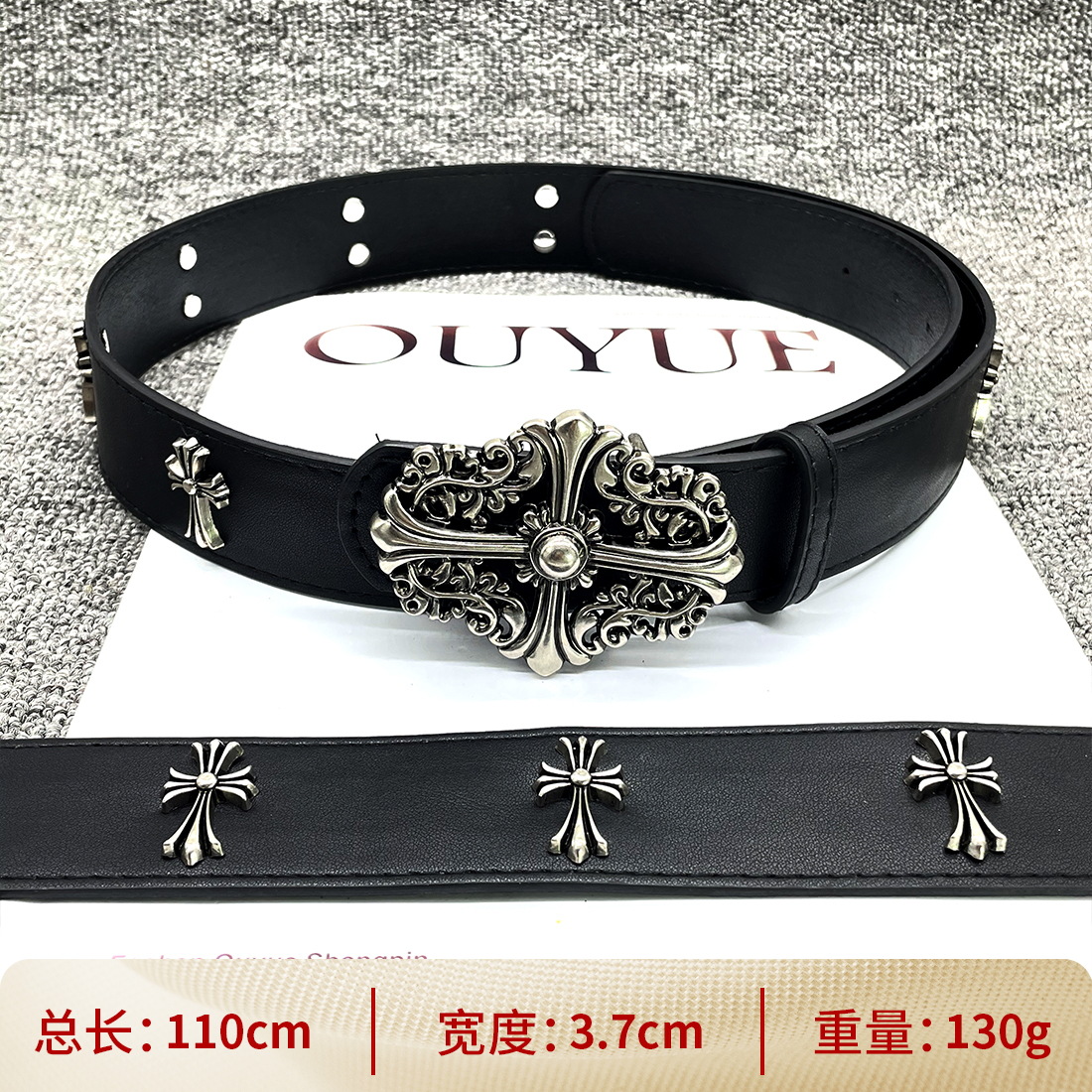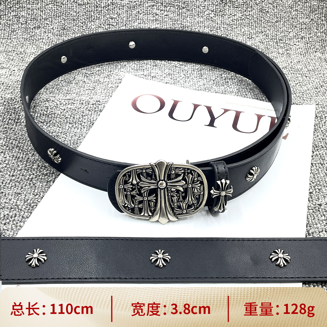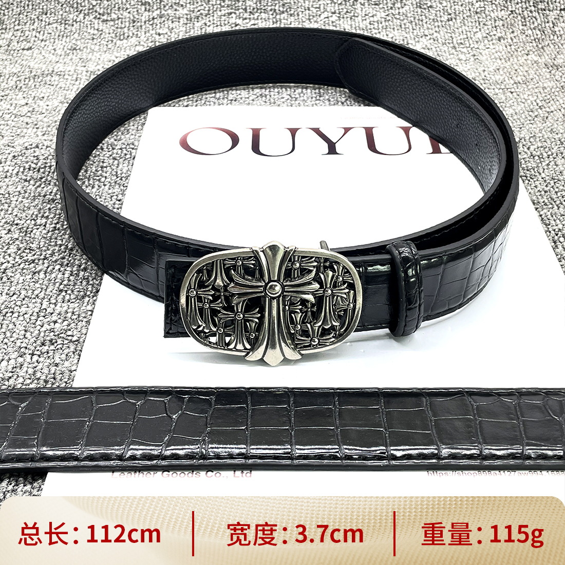 • 【별 8개】【원형 십자 110cm】 크로 클래식 가죽 벨트