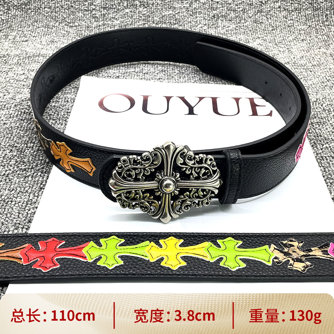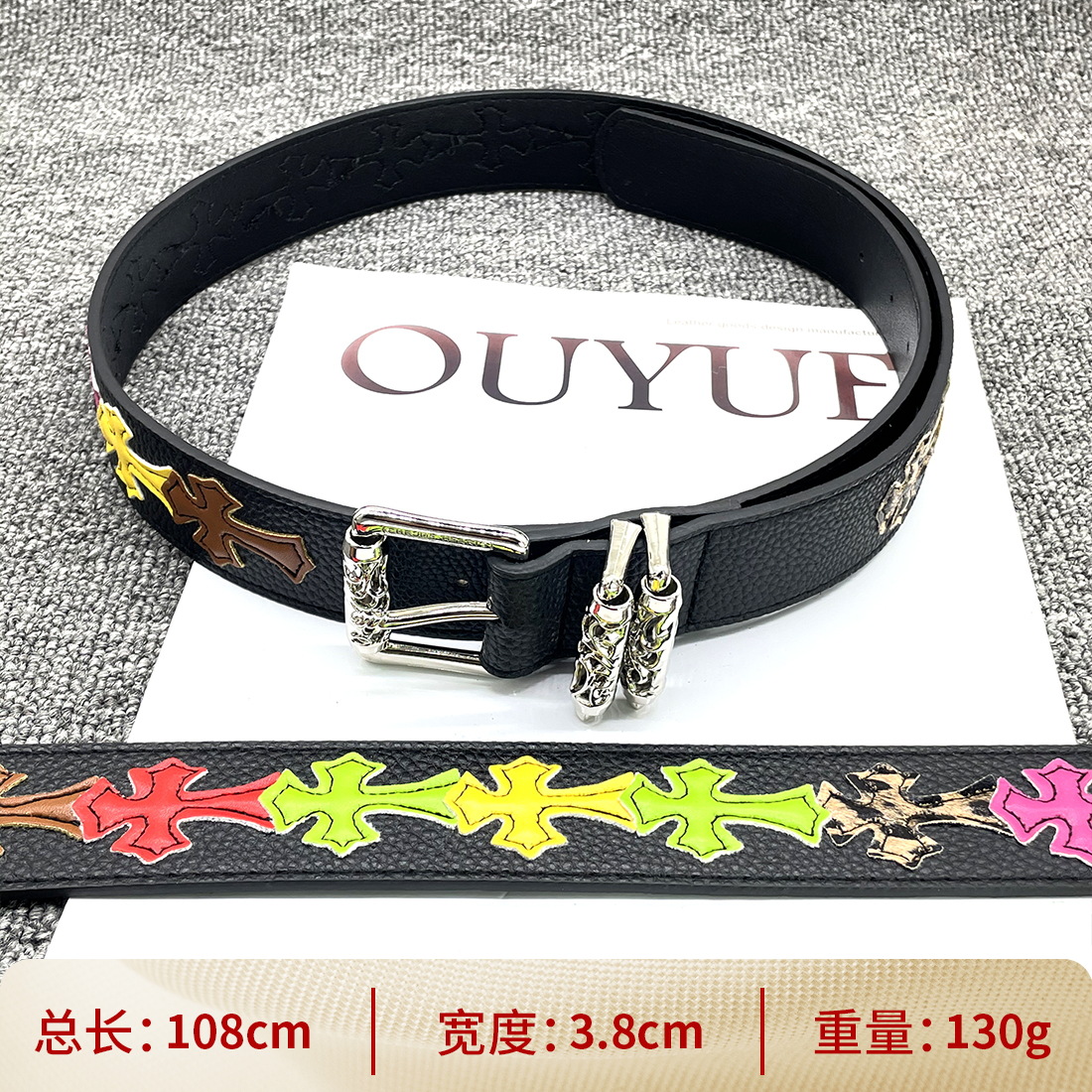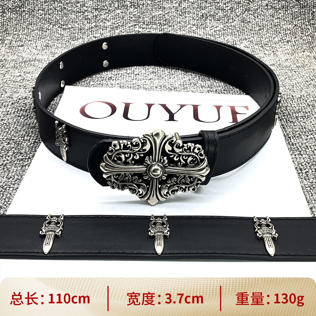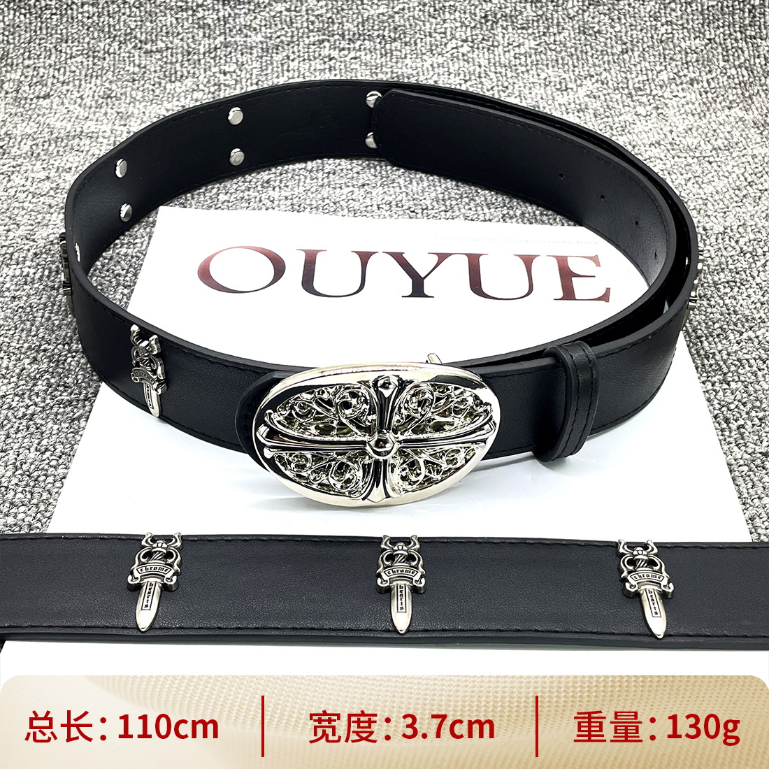 • 【별 8개】【원형 십자 110cm】 크로 클래식 가죽 벨트