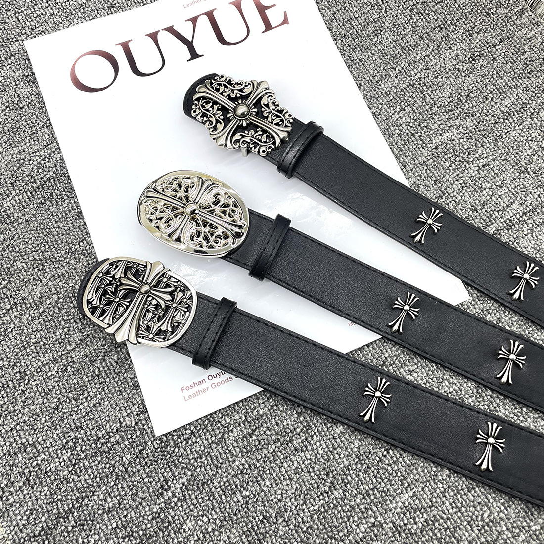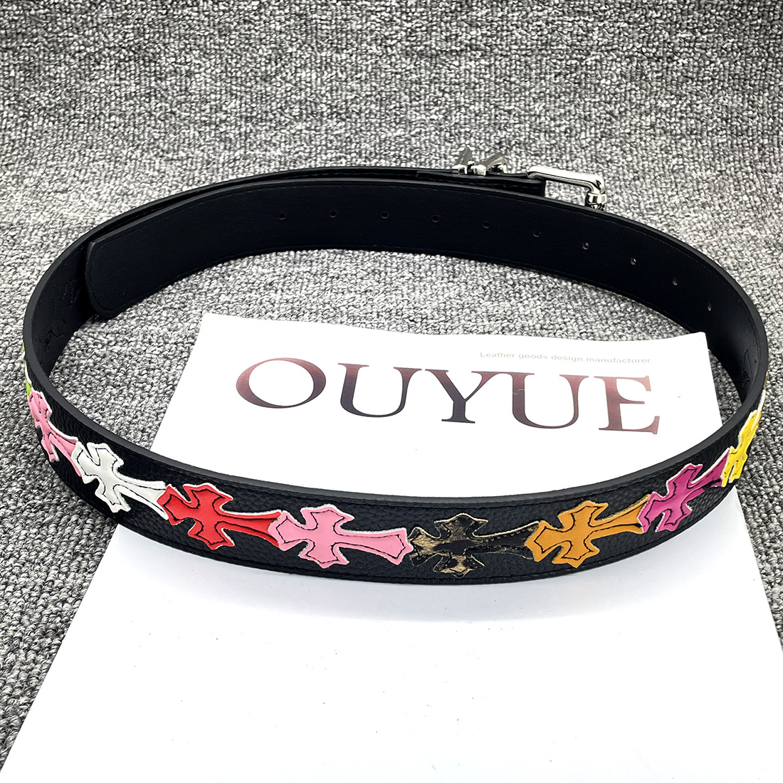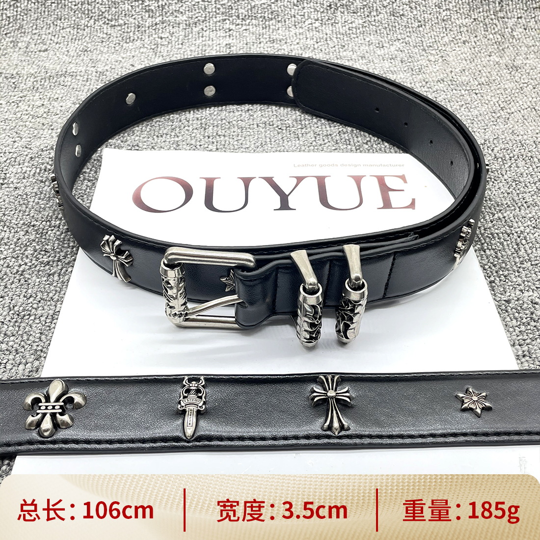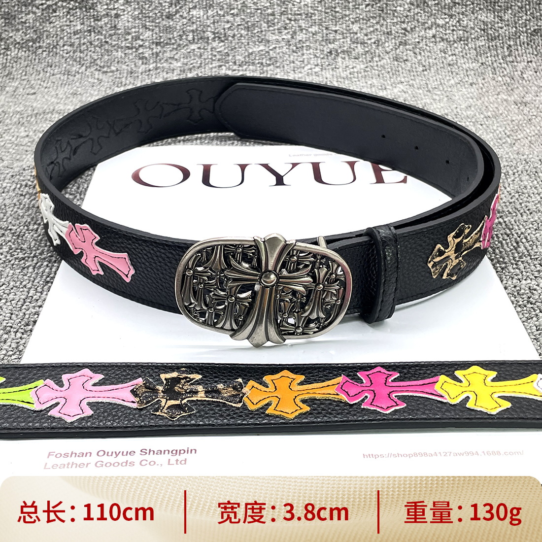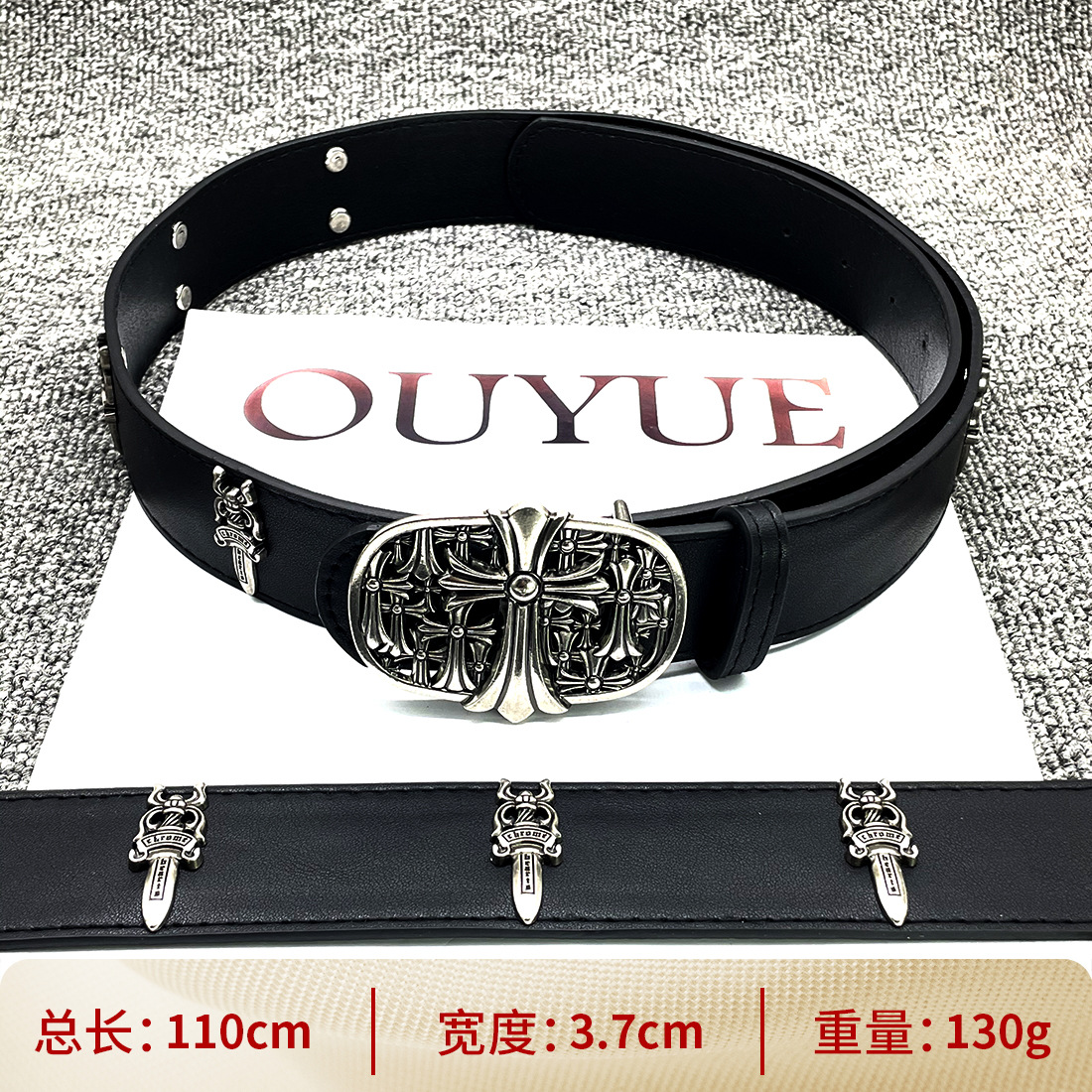 • 【별 8개】【원형 십자 110cm】 크로 클래식 가죽 벨트