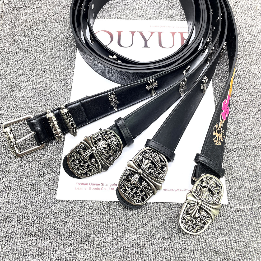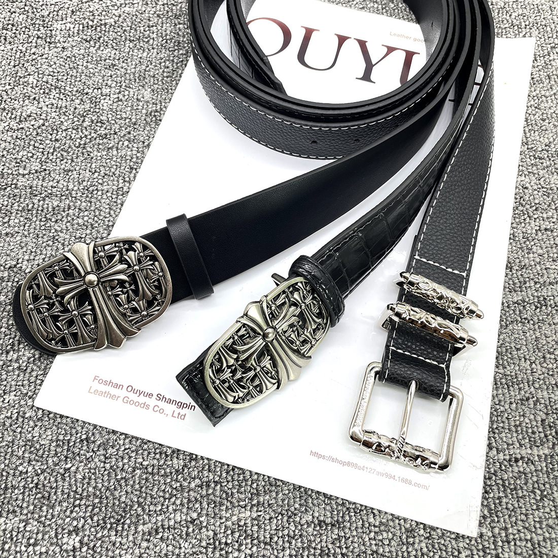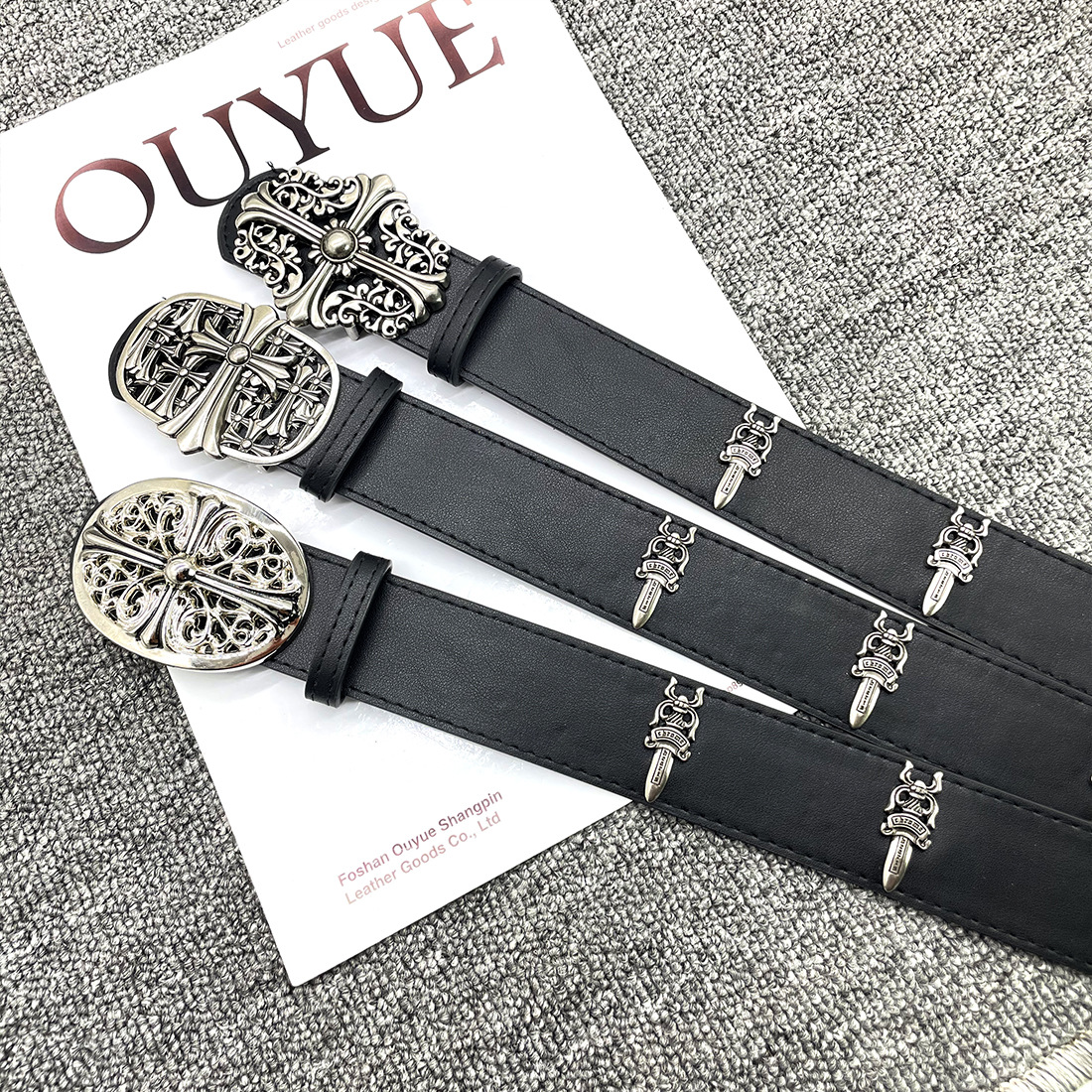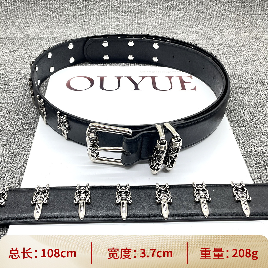 • 【별 8개】【원형 십자 110cm】 크로 클래식 가죽 벨트