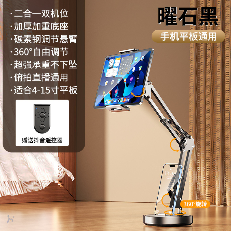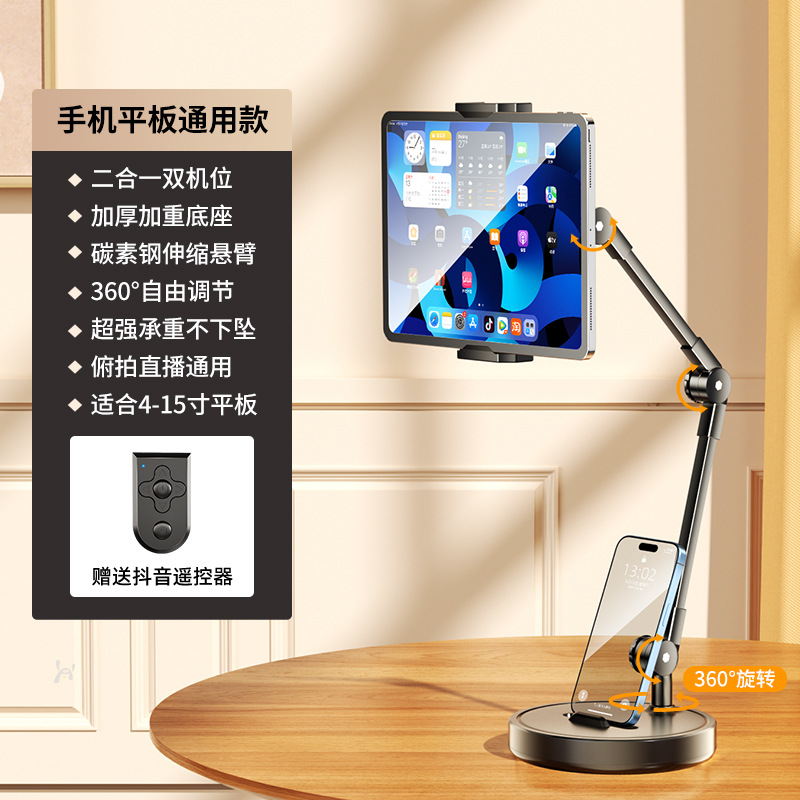 • [태블릿 클립 + Douyin 리모콘] 과체중 베이스 ★ 매우 안정적인 내하중 ★ 720 ° 모든 조정 ★ 라이브 방송/비디오/오버헤드 촬영용 범용