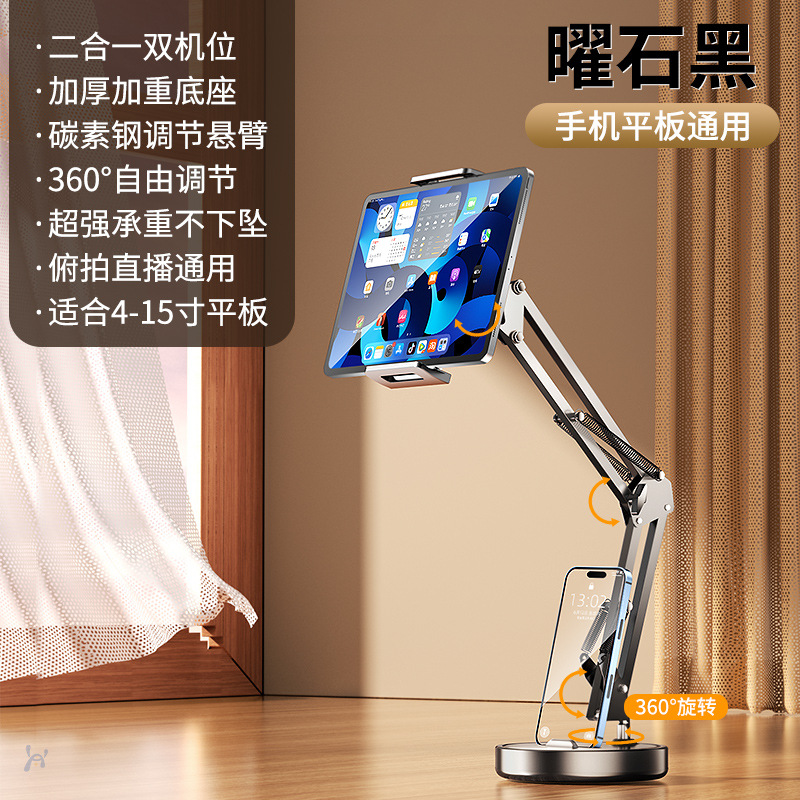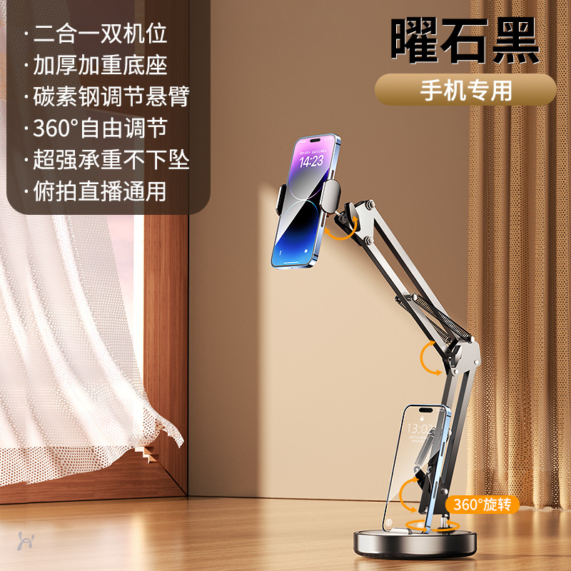 • 텔레스코픽 오버헤드 모델 D60 데스크탑 스탠드 [휴대폰 클립] 과체중 베이스★매우 안정적인 내하중★720°임의 조정★라이브 방송/영상 (기간 한정 특가)