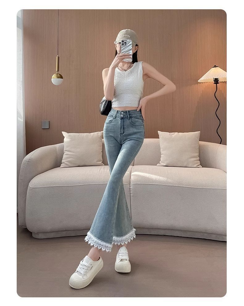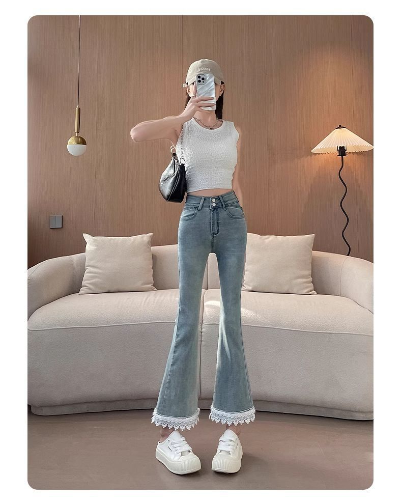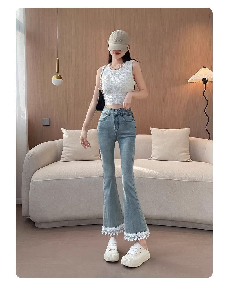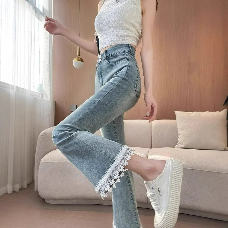 봄 여름 신상 헤비듀티 스플라이스 레이스 스트레치 슬리밍 9부 팬츠로 입기 좋은 여성용 청바지스토어 가기