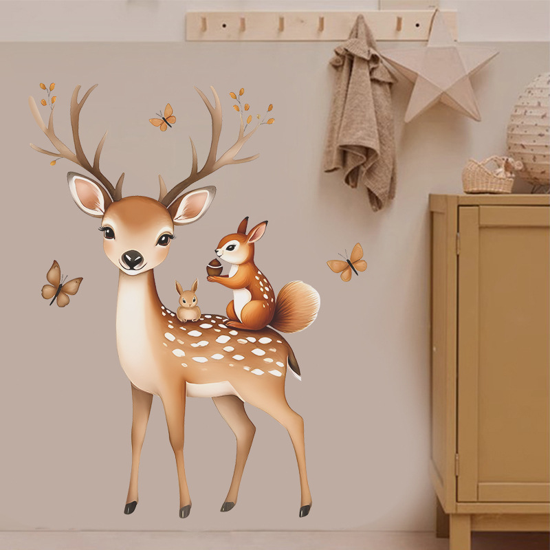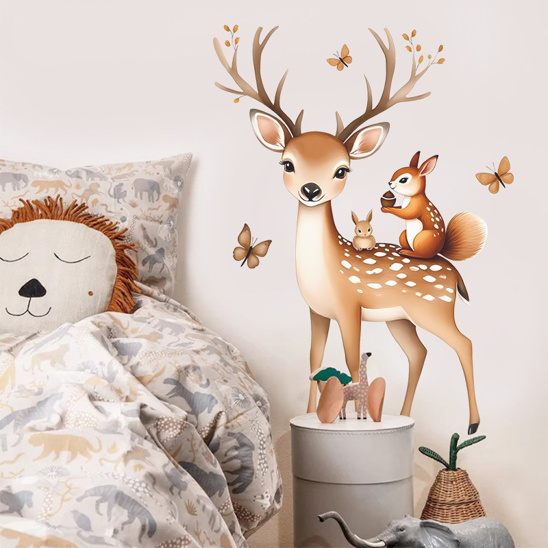 국경 간 대외 무역 만화 동물 사슴 다람쥐 토끼 어린이 방 유치원 배경 장식 벽 스티커 자체 접착스토어 가기