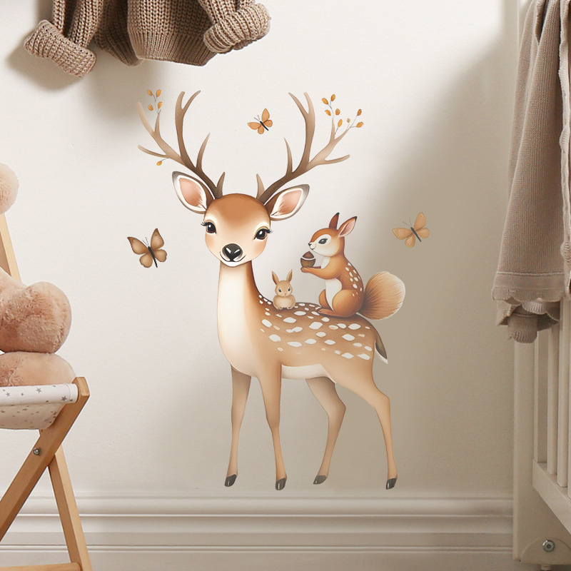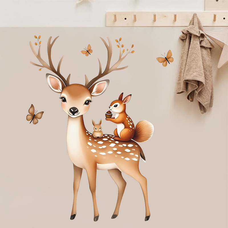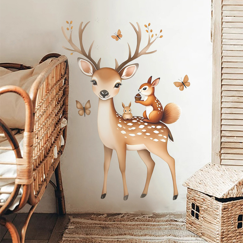 국경 간 대외 무역 만화 동물 사슴 다람쥐 토끼 어린이 방 유치원 배경 장식 벽 스티커 자체 접착