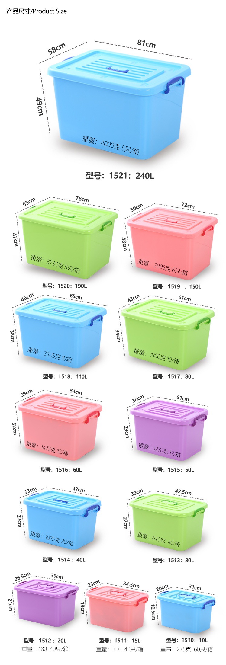 보관 상자 플라스틱 단색 투명 손잡이 대형 보관 상자 식품 어린이 장난감 보관 상자 잔해물 보관 상자