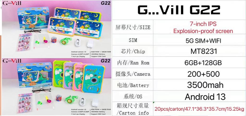 Gvill Cross Border G22 태블릿 안드로이드 통화 2SIM 어린이 만화 태블릿 WiFi 블루투스스토어 가기