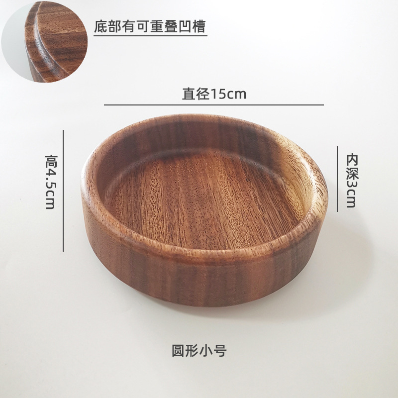 북미 검은 호두 말린 과일 접시 일본식 스낵 차 접시 단단한 나무 둥근 그릇 쌓을 수있는 직사각형 트레이