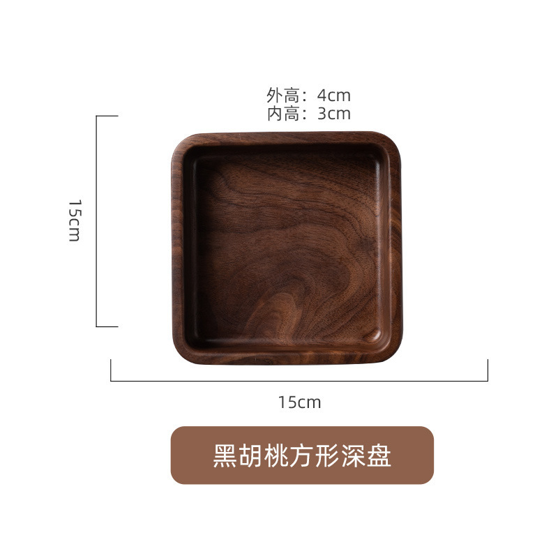 북미 검은 호두 말린 과일 접시 일본식 스낵 차 접시 단단한 나무 둥근 그릇 쌓을 수있는 직사각형 트레이스토어 가기