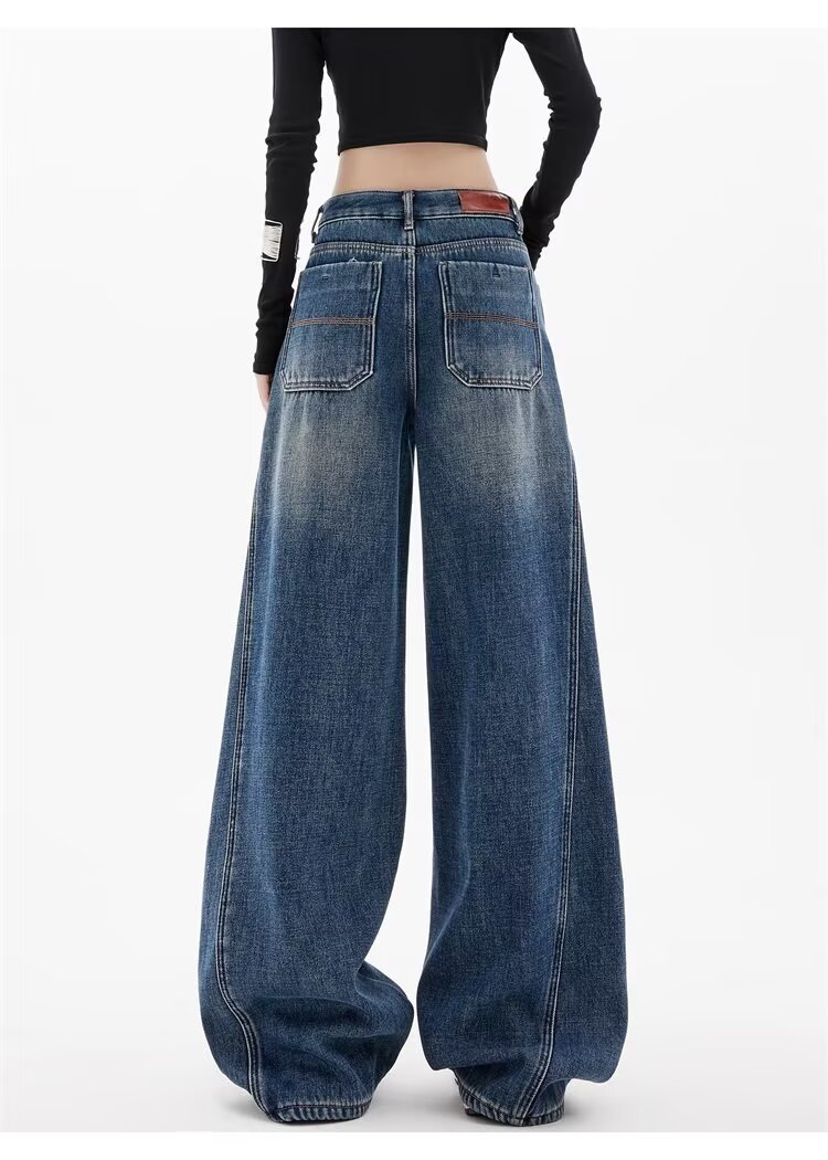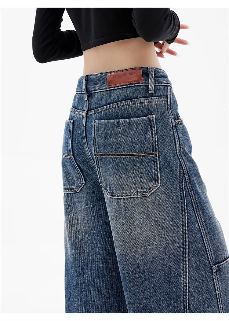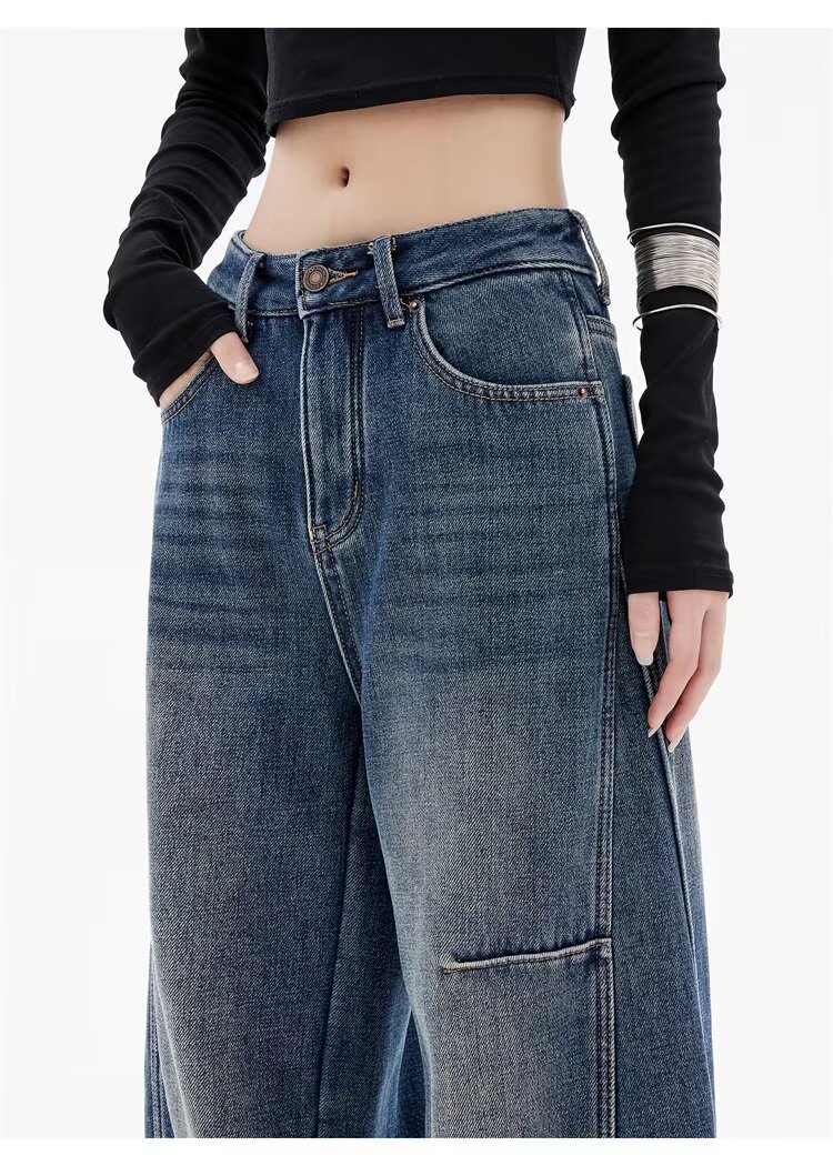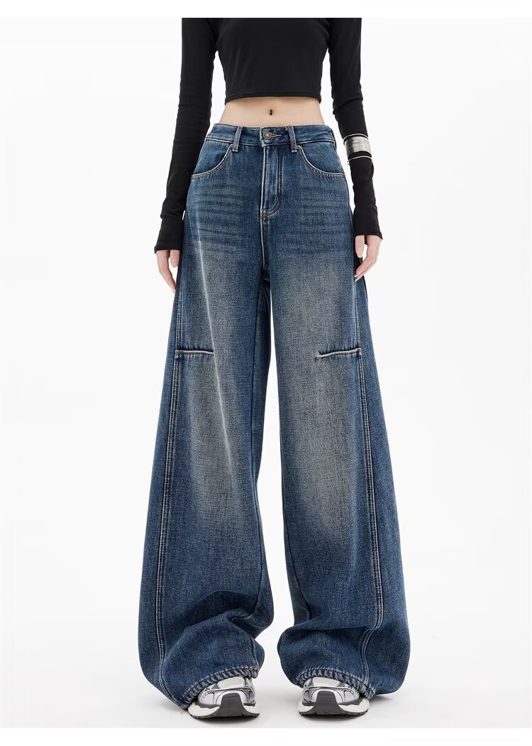 봄 디자인의 여성용 아메리칸 레트로 찢어진 채찍 청바지, 루즈하고 슬림하며 바닥 길이의 와이드 레그 낫 팬츠, 트렌디함스토어 가기