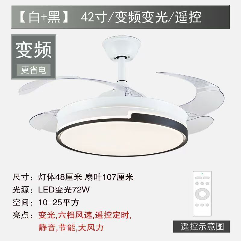 가정용 새로운 간단한 지능형 보이지 않는 가변 주파수 팬 램프 레스토랑 거실 침실 샹들리에 팬 천장 팬 램프