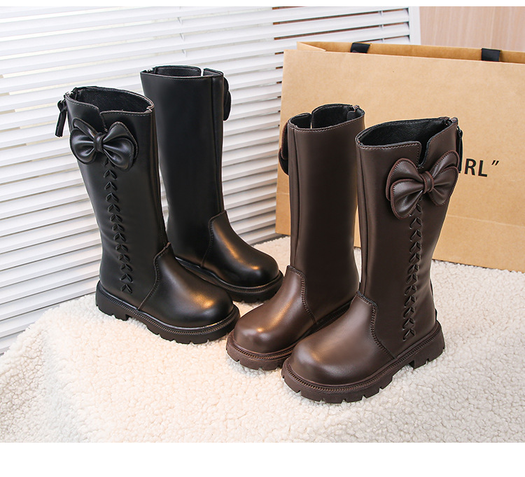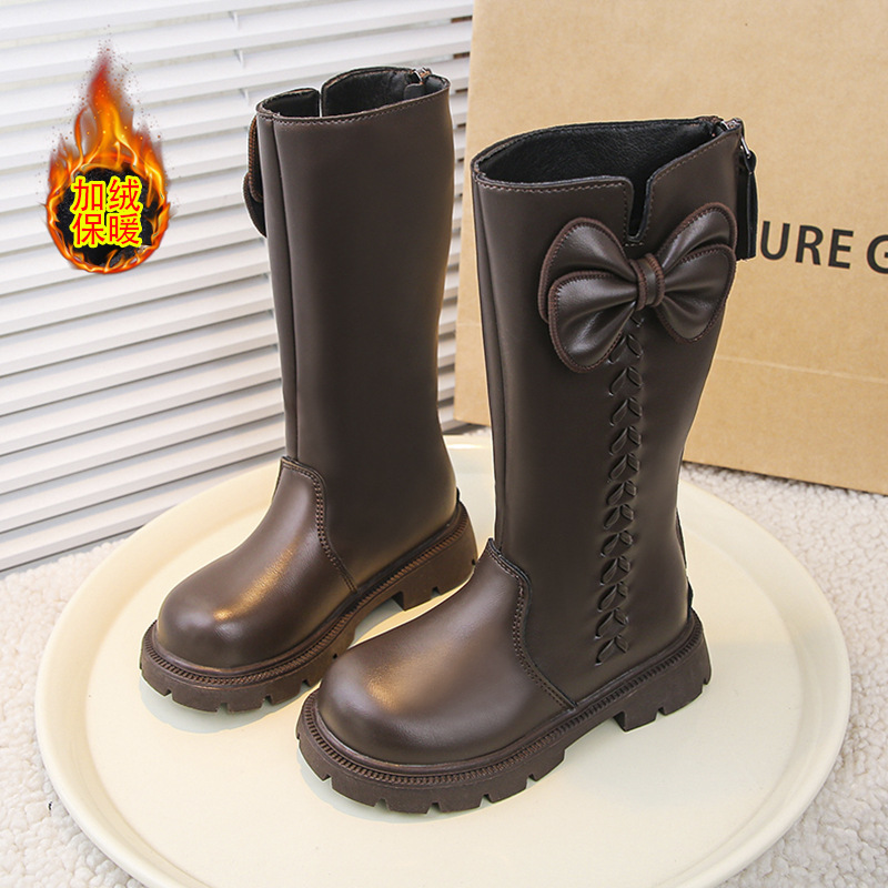 여아용 부츠, 가을 겨울 신상 여아용 부츠, 리본 가죽 부츠, 벨벳 따뜻한 여아용 부츠, 면 부츠스토어 가기