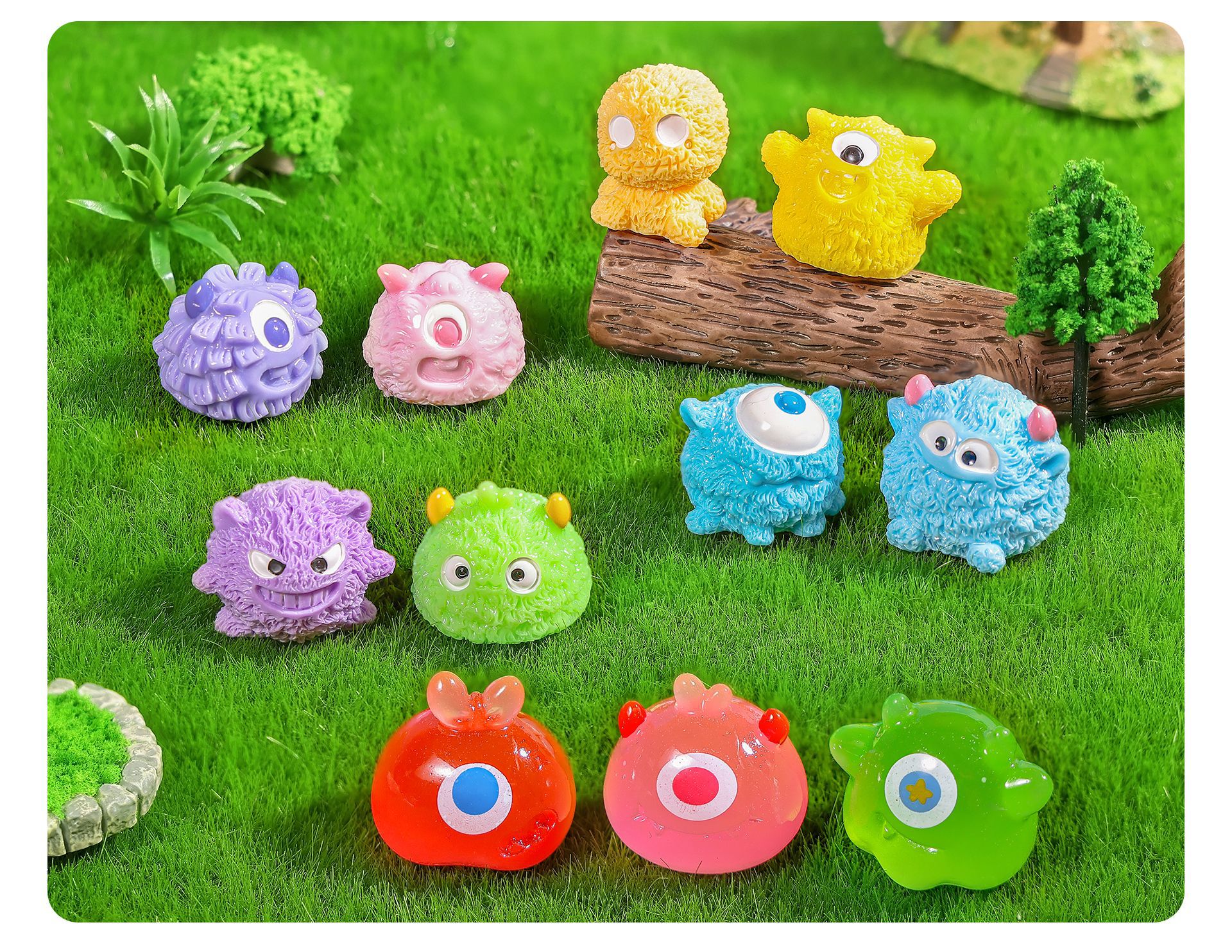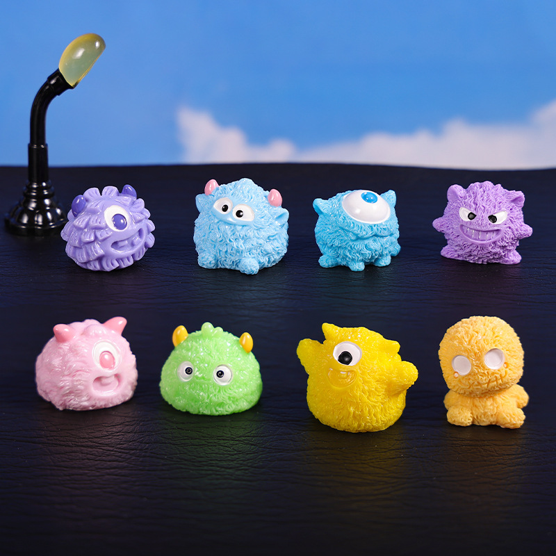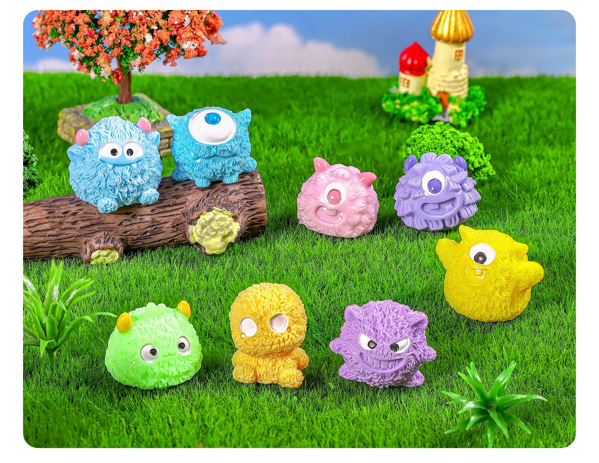 마이크로 풍경 장식품, 귀엽고 창의적인 작은 모피 괴물 동물 인형 집 수지 DIY 장식 데스크탑 자동차 장식품