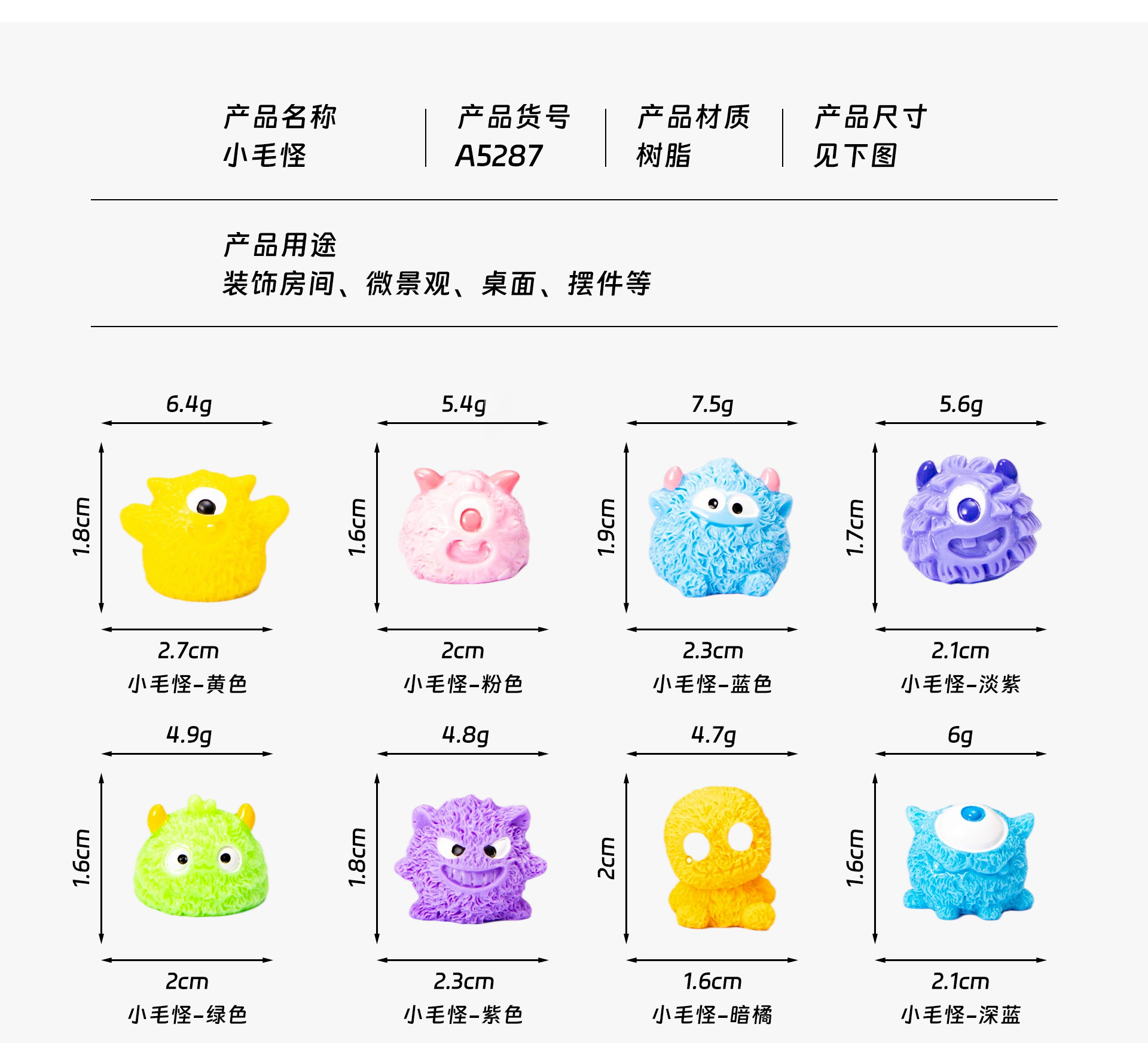 마이크로 풍경 장식품, 귀엽고 창의적인 작은 모피 괴물 동물 인형 집 수지 DIY 장식 데스크탑 자동차 장식품스토어 가기
