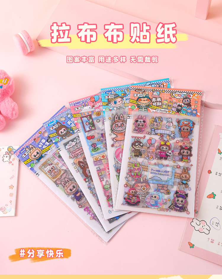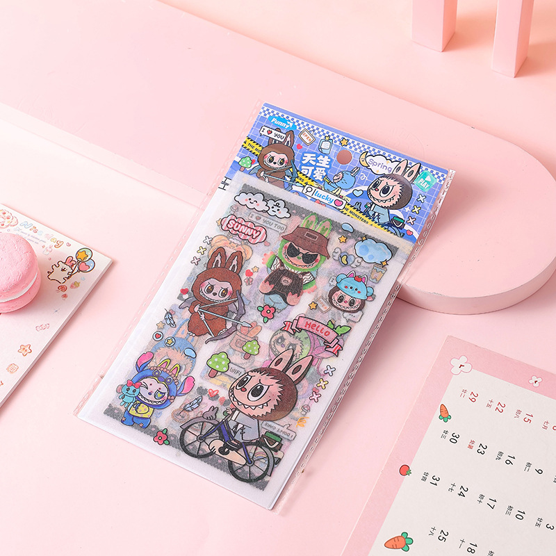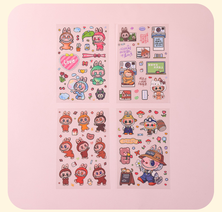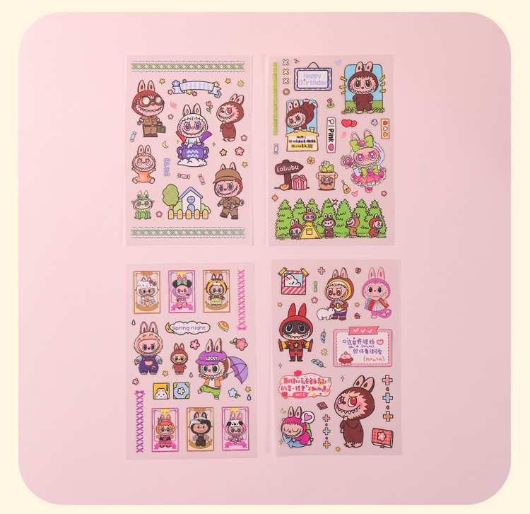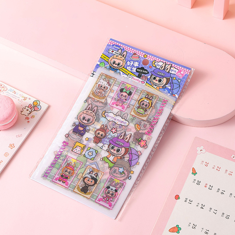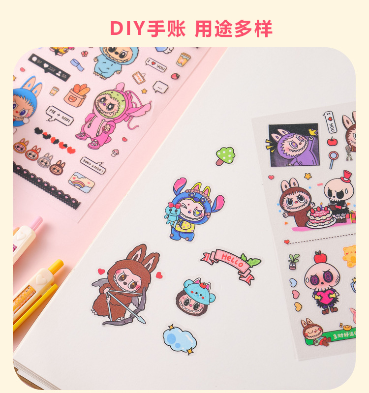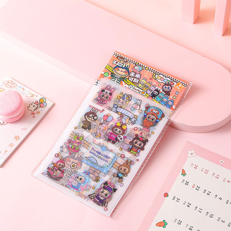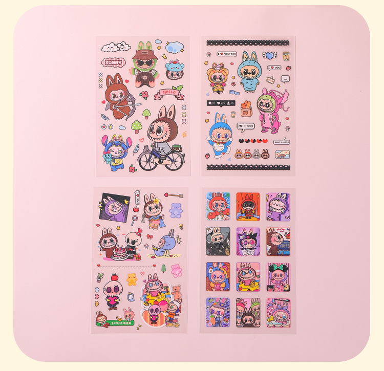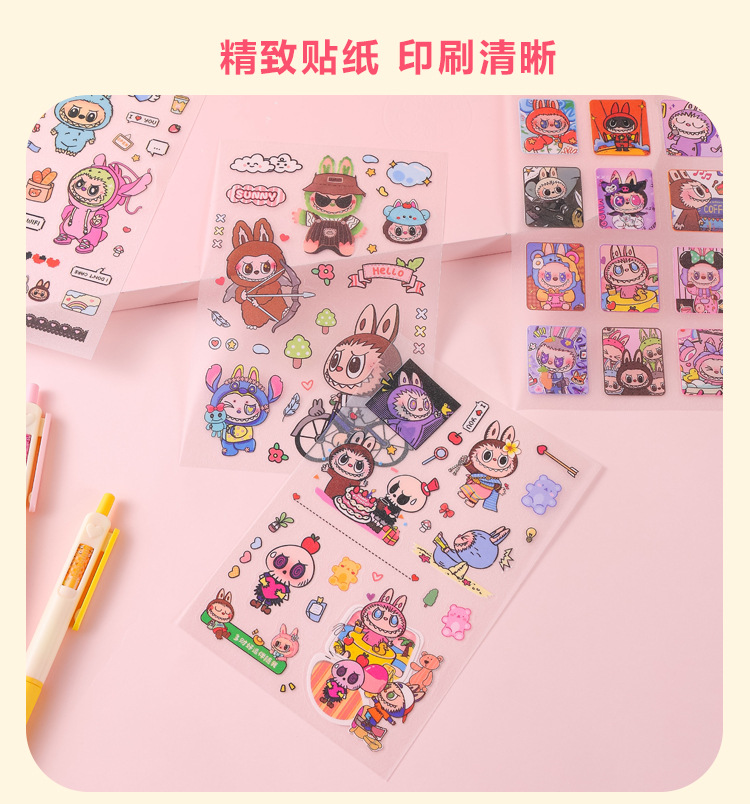 인기있는 만화 라부 블록 핸드북 스티커 팩 diy 재료 장식 스티커 애니메이션 만화 스티커 학생 선물스토어 가기