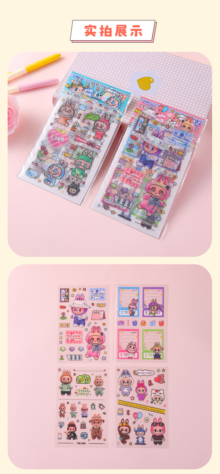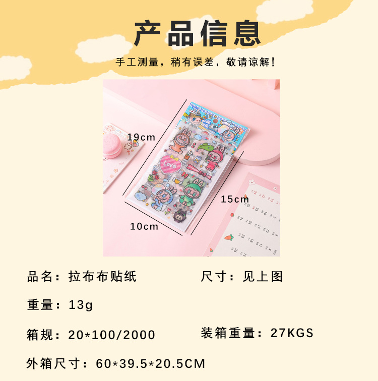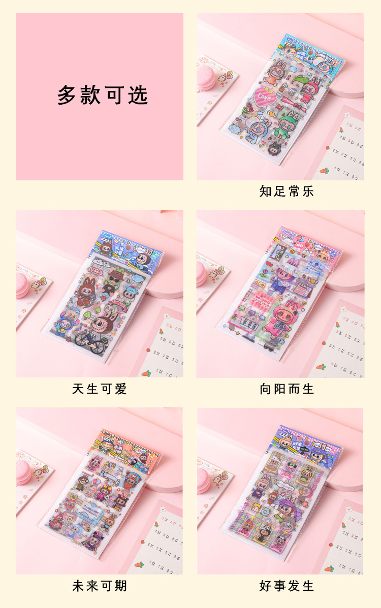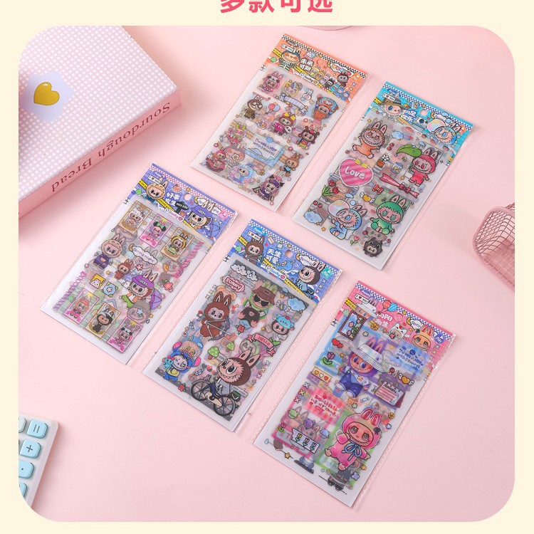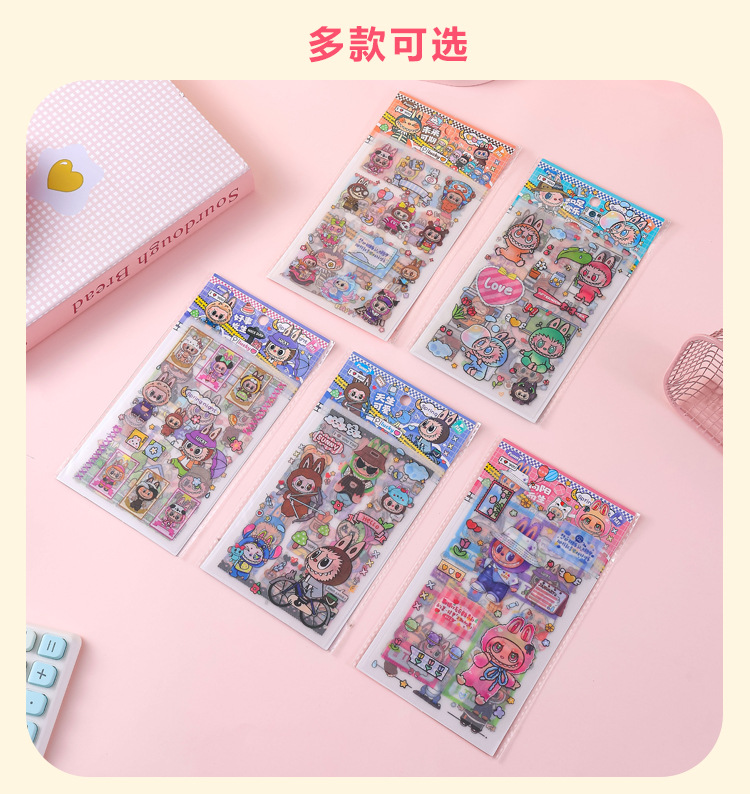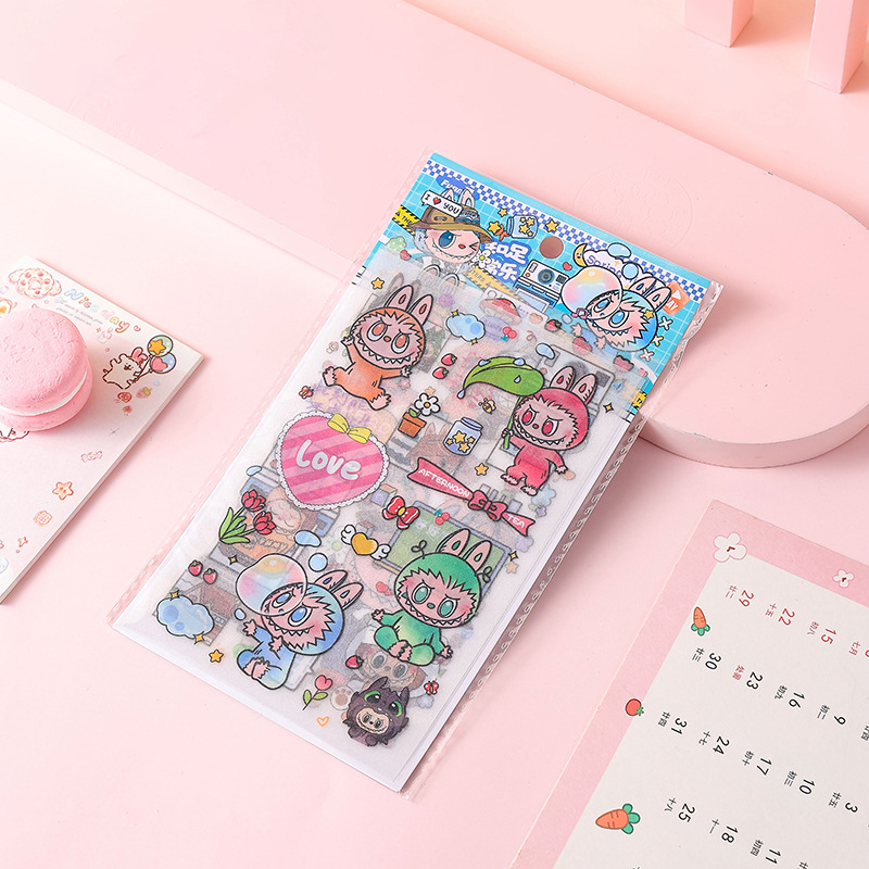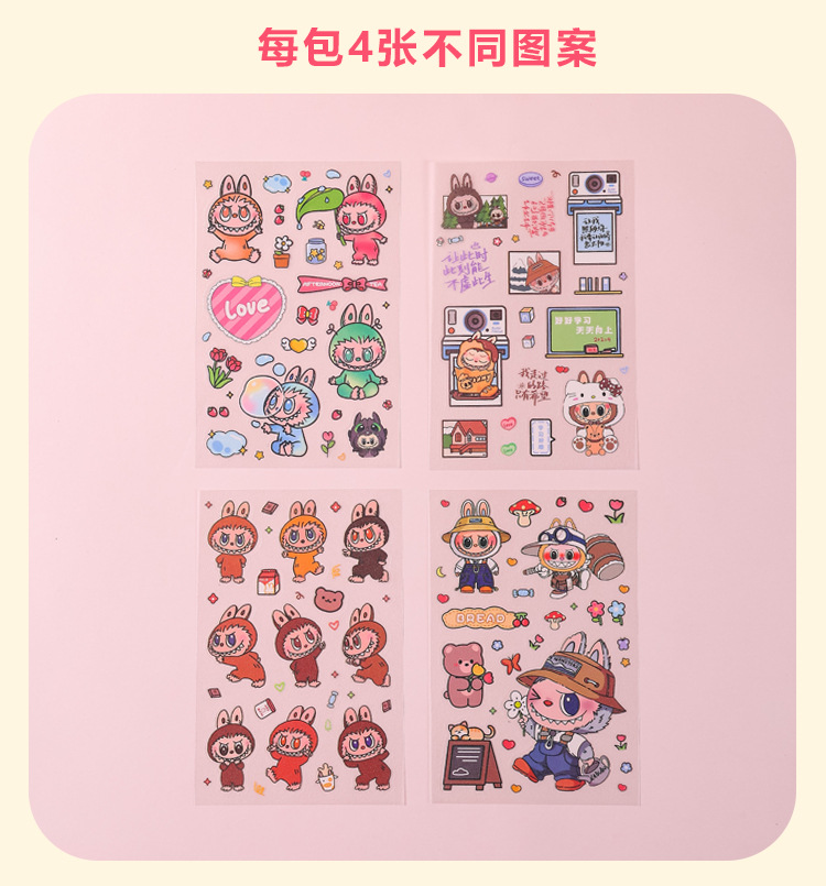 인기있는 만화 라부 블록 핸드북 스티커 팩 diy 재료 장식 스티커 애니메이션 만화 스티커 학생 선물스토어 가기