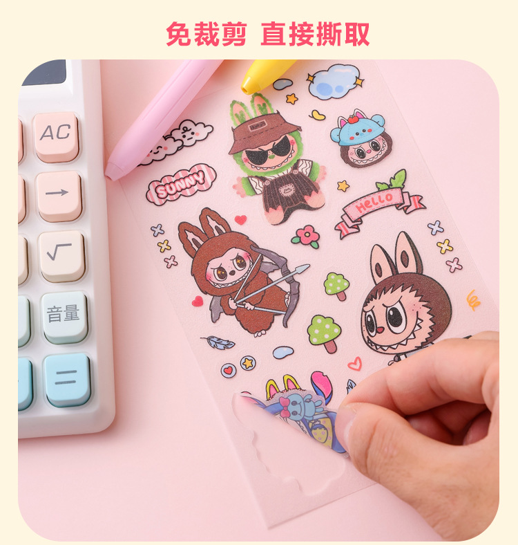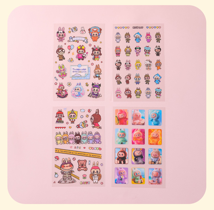 인기있는 만화 라부 블록 핸드북 스티커 팩 diy 재료 장식 스티커 애니메이션 만화 스티커 학생 선물