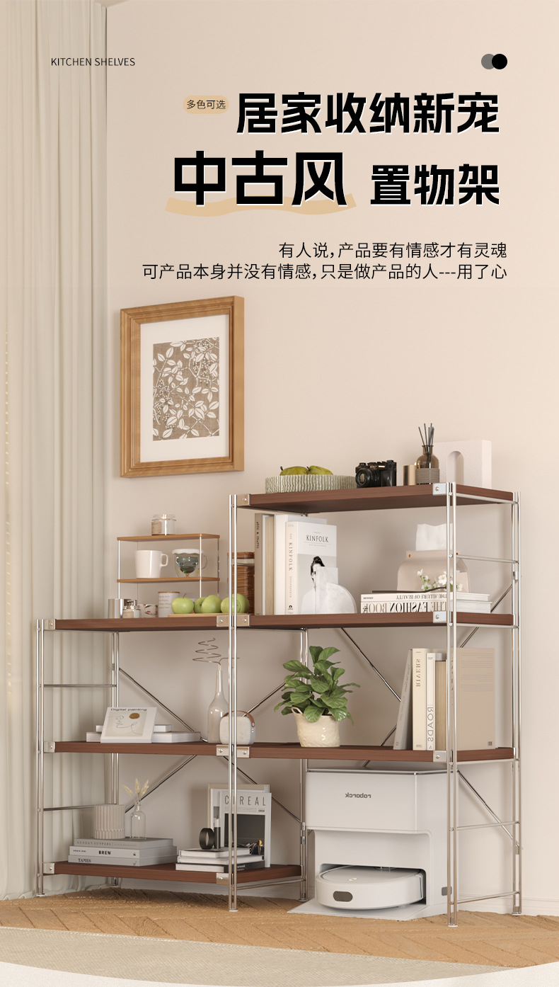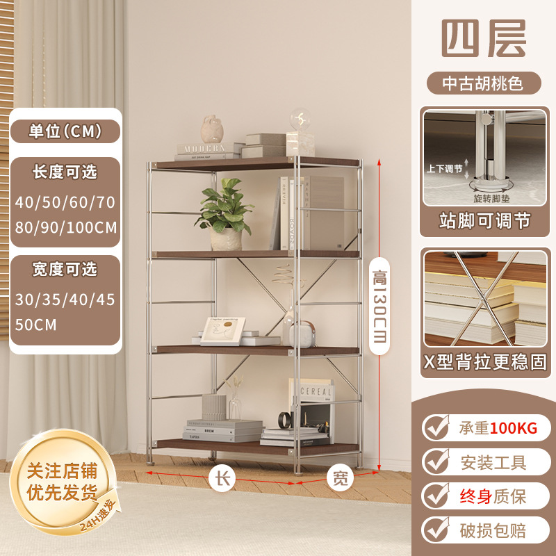 고급 수납 선반, 일본식 다층 수납 선반, 바닥에서 천장까지의 수납 선반, 가정용 다기능 책장, 통나무 스타일 선반스토어 가기
