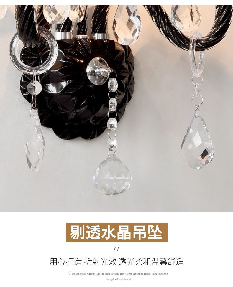 프랑스 스타일 크리스탈 벽 램프 크리스탈 곡선 튜브 램프 흰색 투명 검정색 침실 벽 램프 머리맡 램프스토어 가기