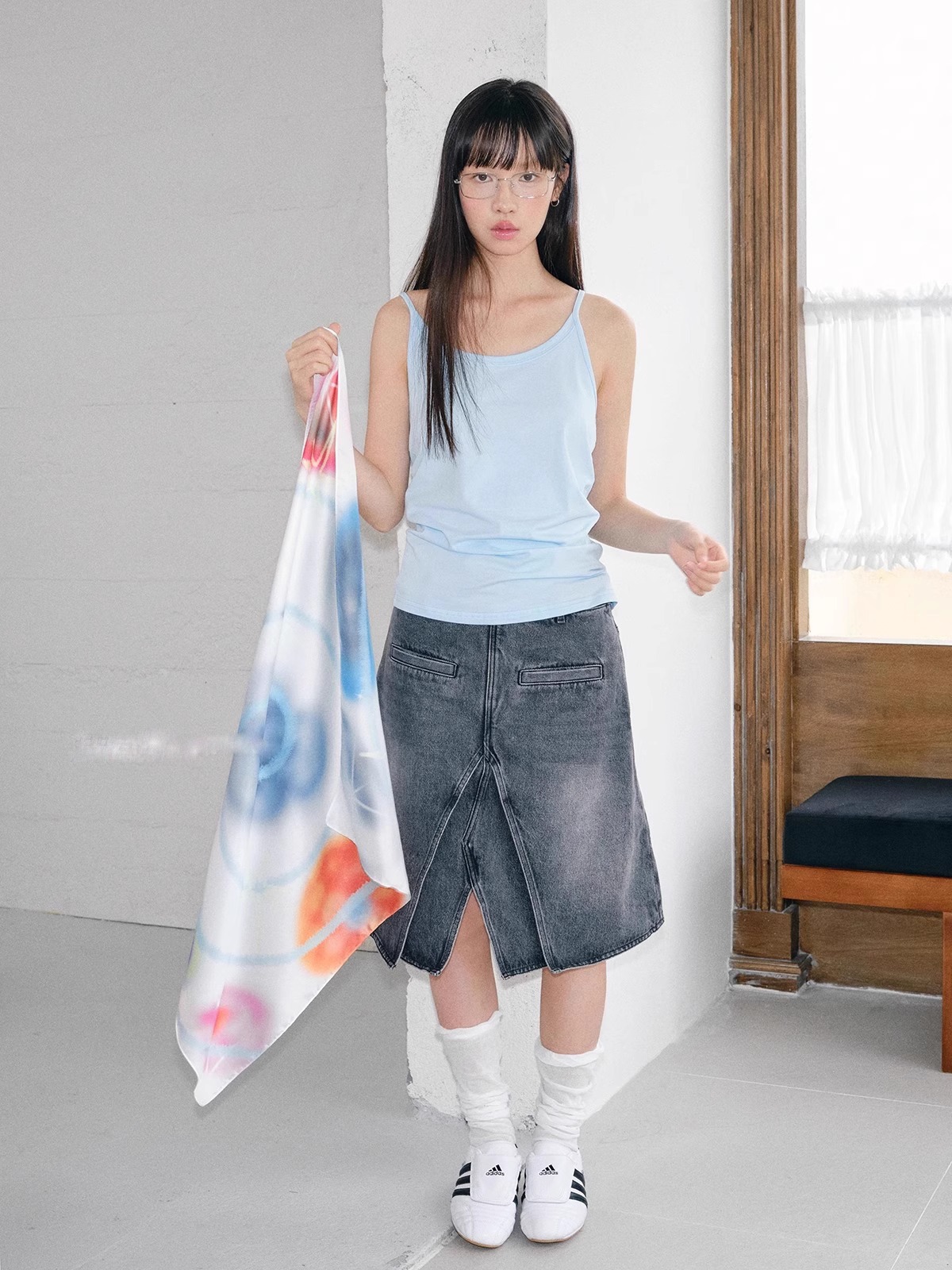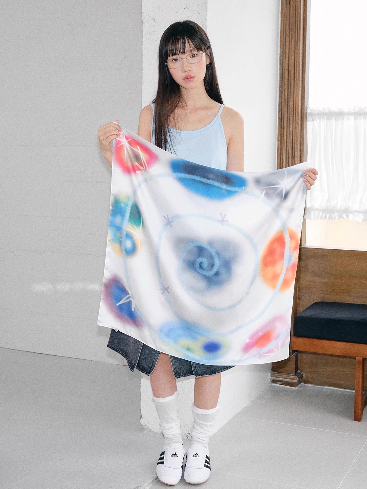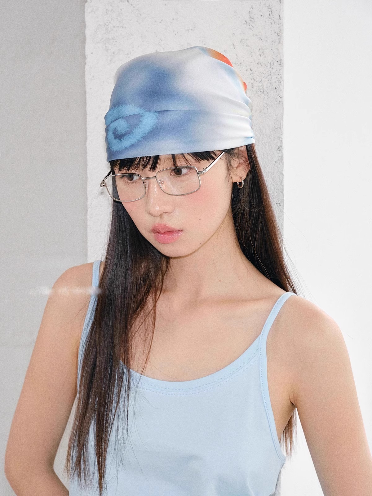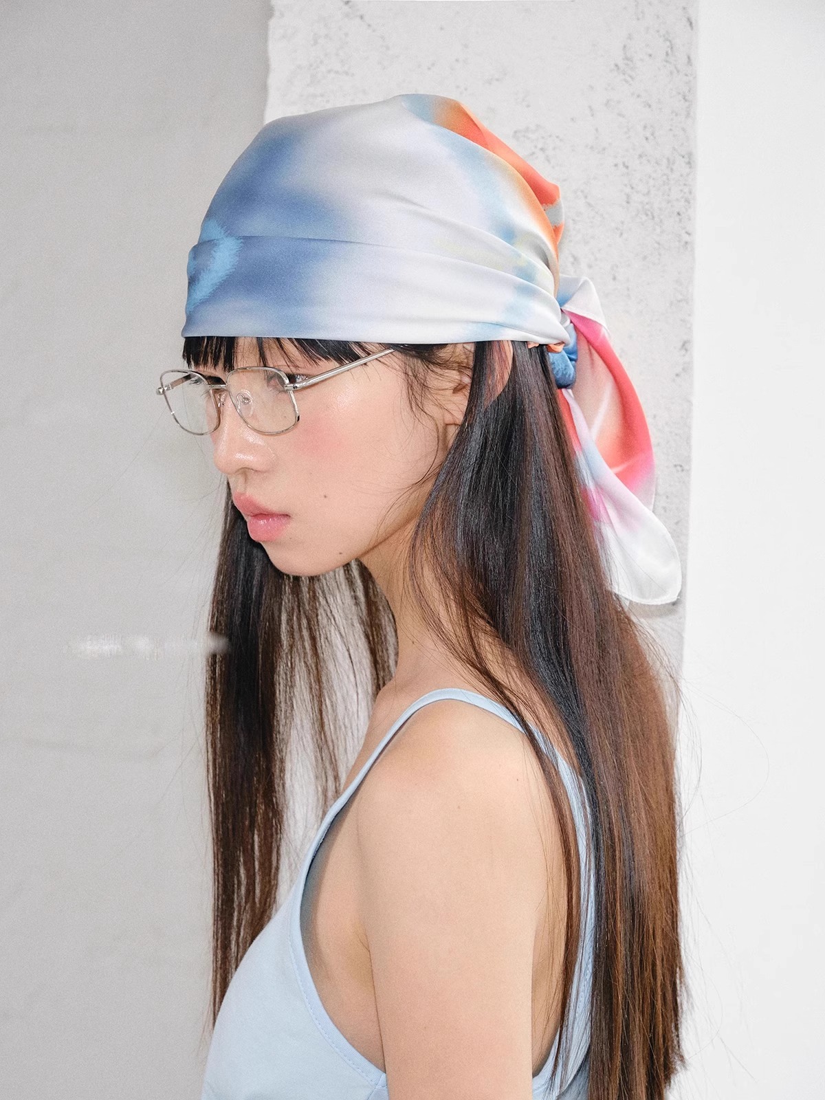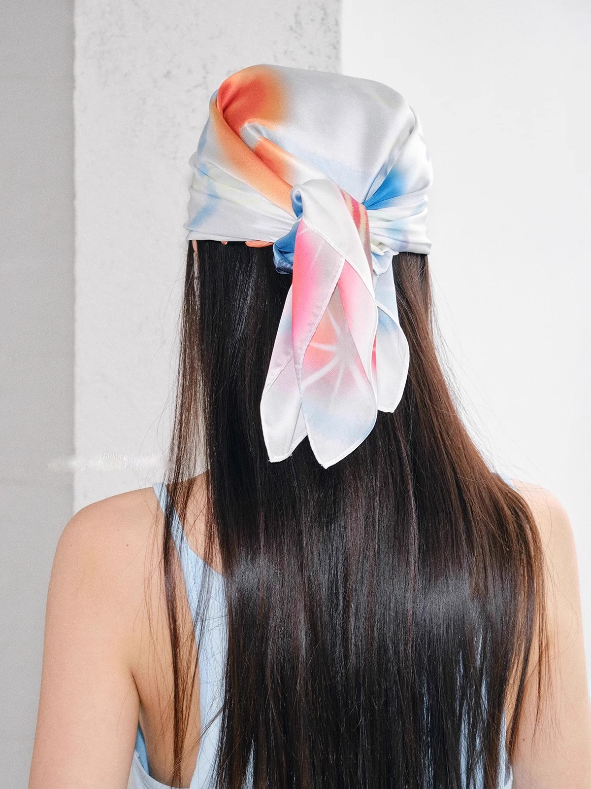 레트로 유럽과 미국의 튜브 탑 스퀘어 스카프 머리띠 여성 여름 얇은 레이저 실크 스카프 가슴 감싸는 미국의 뜨거운 소녀 액세서리