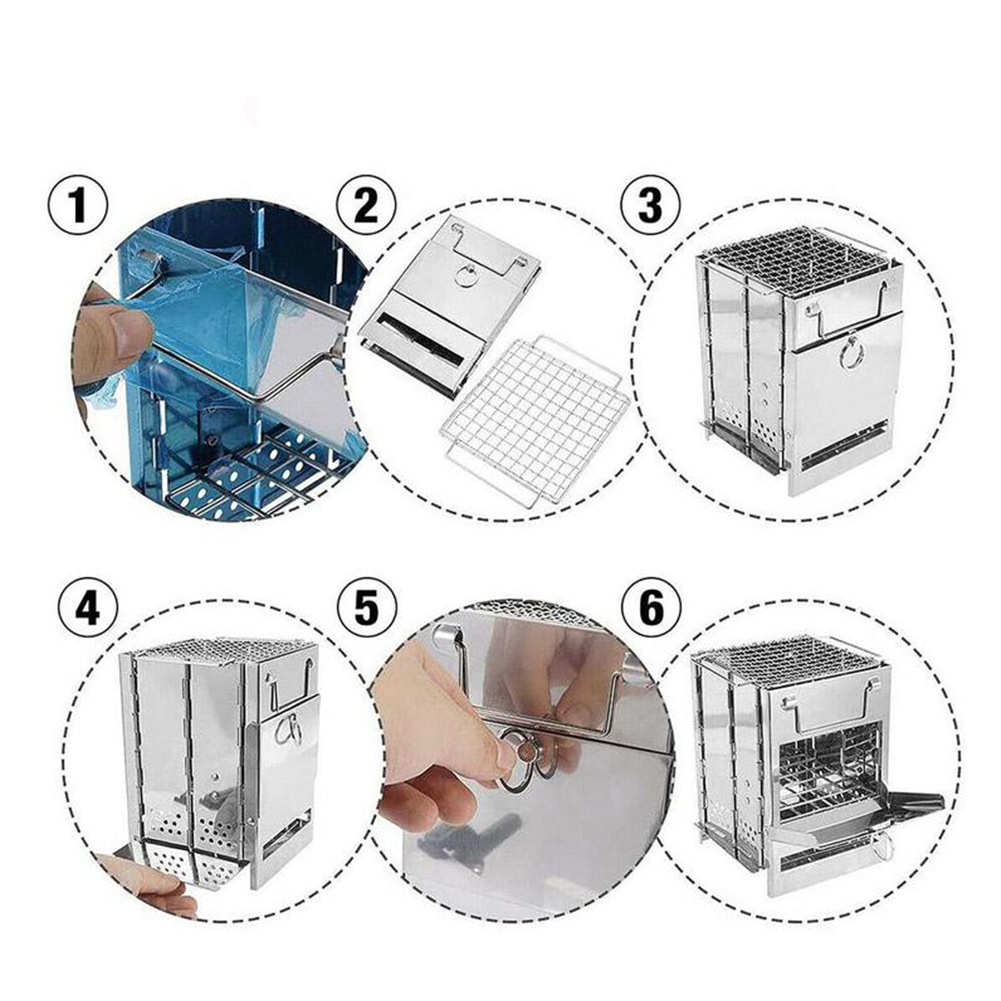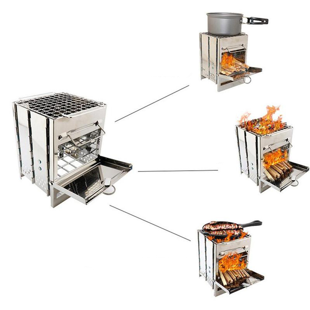 스테인레스 스틸 접이식 바베큐 그릴 사각형 휴대용 고정 장작 스토브 바베큐 그릴 피크닉 스토브 난방 스토브 모닥불 스토브
