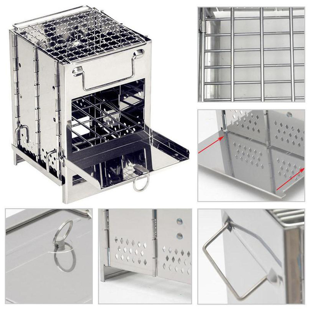 스테인레스 스틸 접이식 바베큐 그릴 사각형 휴대용 고정 장작 스토브 바베큐 그릴 피크닉 스토브 난방 스토브 모닥불 스토브스토어 가기