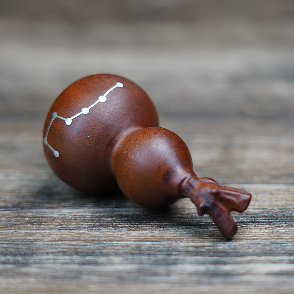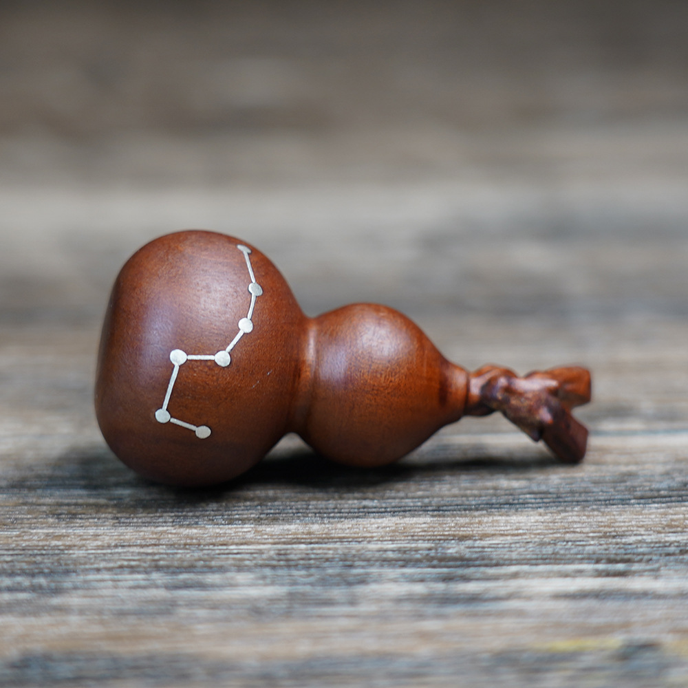 천연 낙뢰에 타격받은 대추나무 뿌리에서 만든 일곱개의 작은 호박 모양 펜던트, 정교하게 조각된 안전과 번영을 상징하는 목조 조각품, 도교 용품스토어 가기