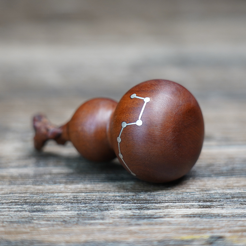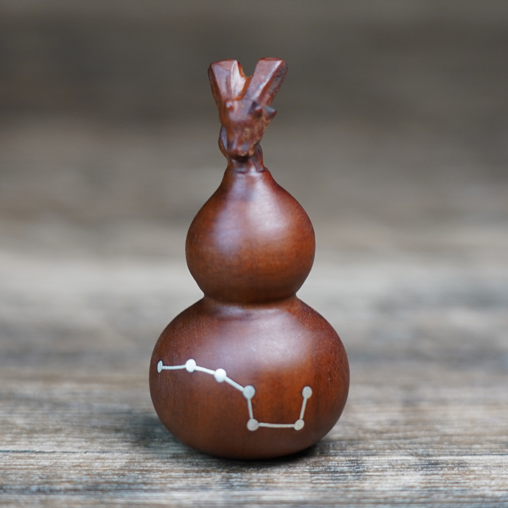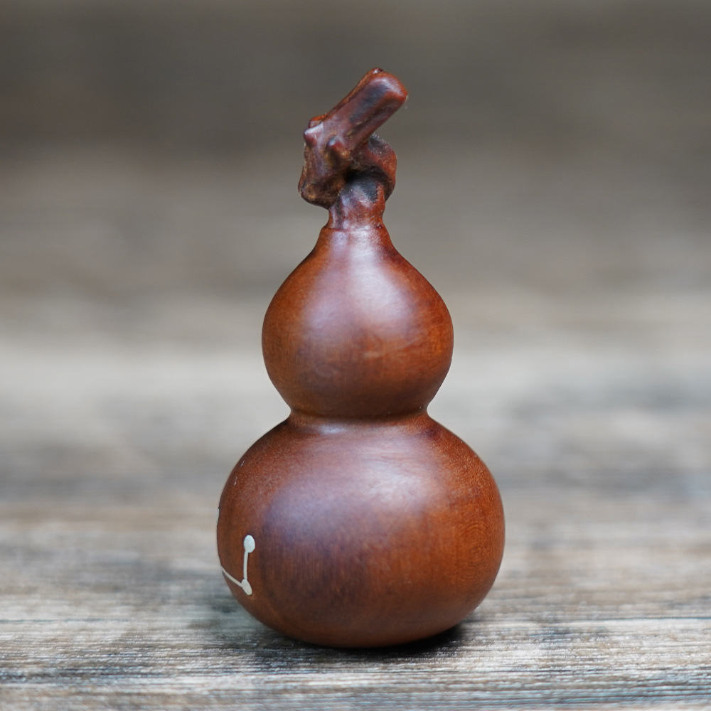 천연 낙뢰에 타격받은 대추나무 뿌리에서 만든 일곱개의 작은 호박 모양 펜던트, 정교하게 조각된 안전과 번영을 상징하는 목조 조각품, 도교 용품