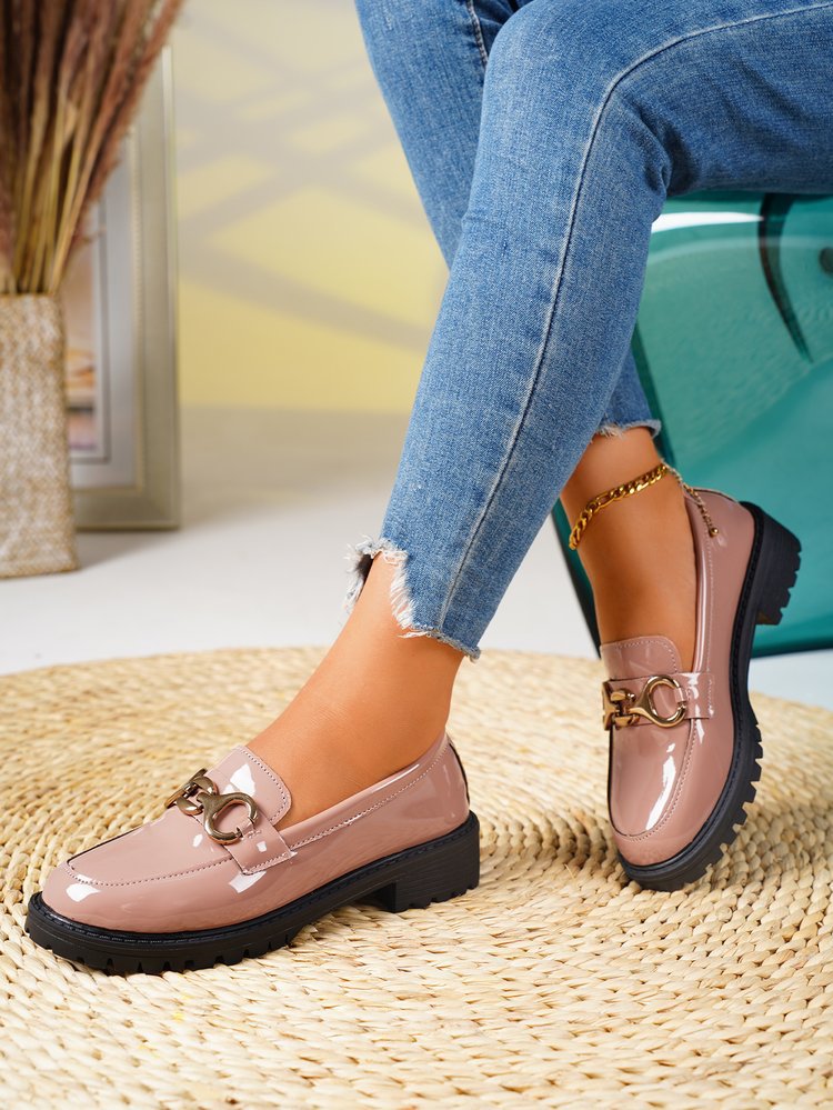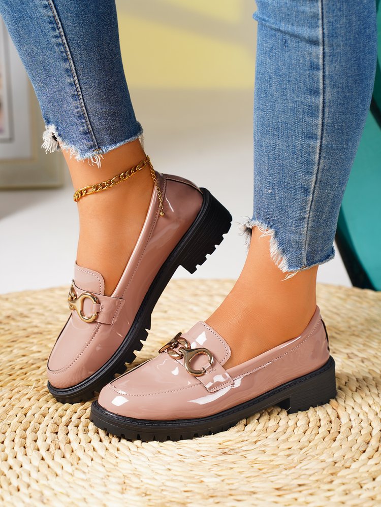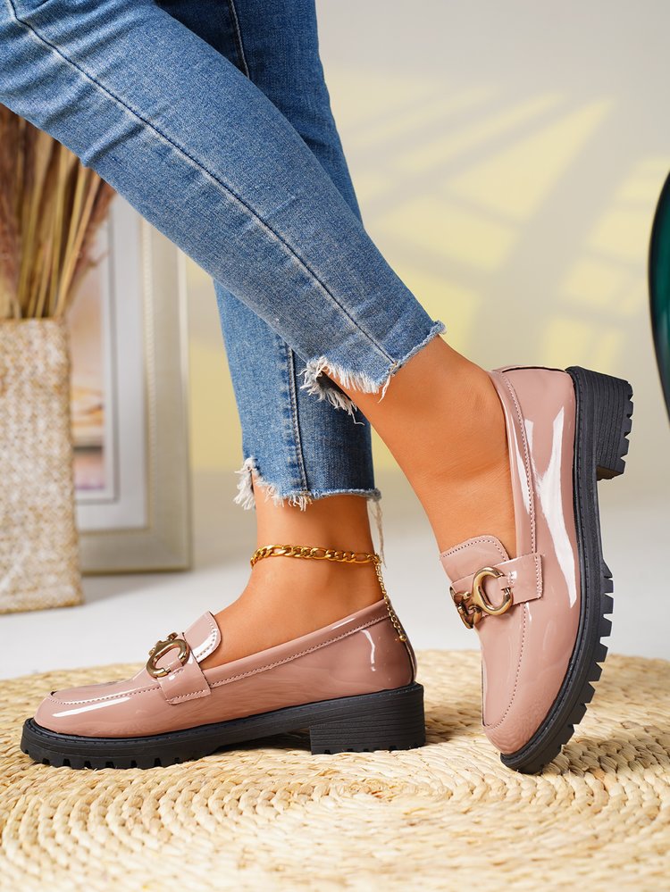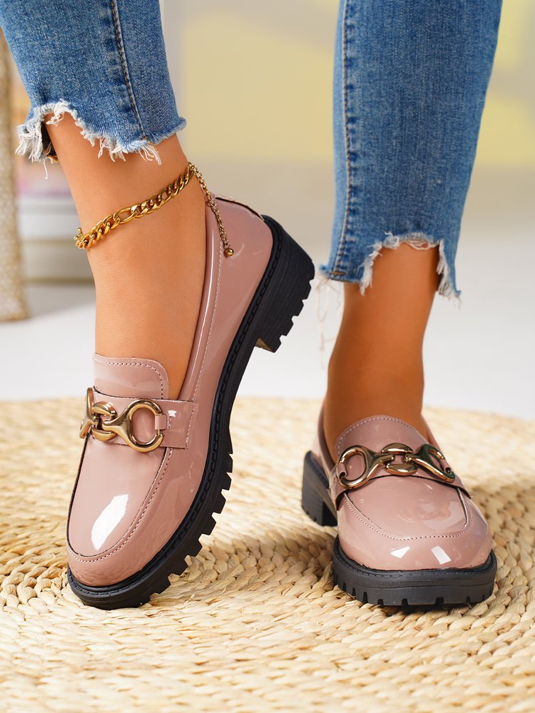 2025 새로운 영국 스타일 여성용 작은 가죽 신발 새로운 두꺼운 굽 둥근 발가락 금속 버클 두꺼운 밑창 여성 신발 대형 로퍼스토어 가기