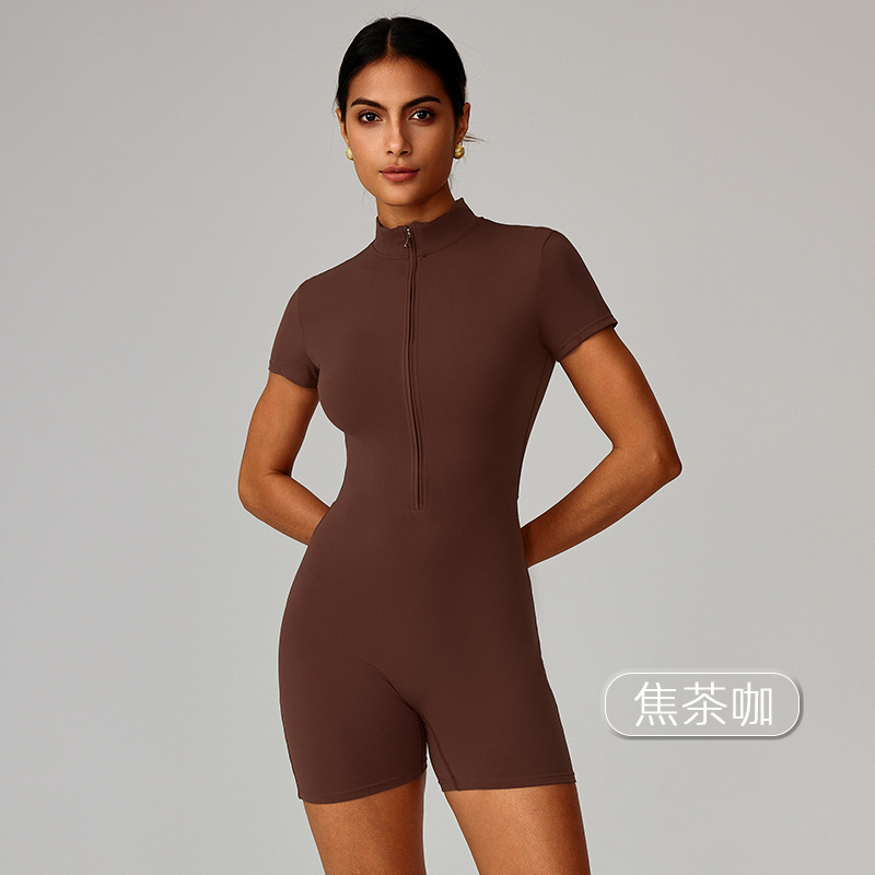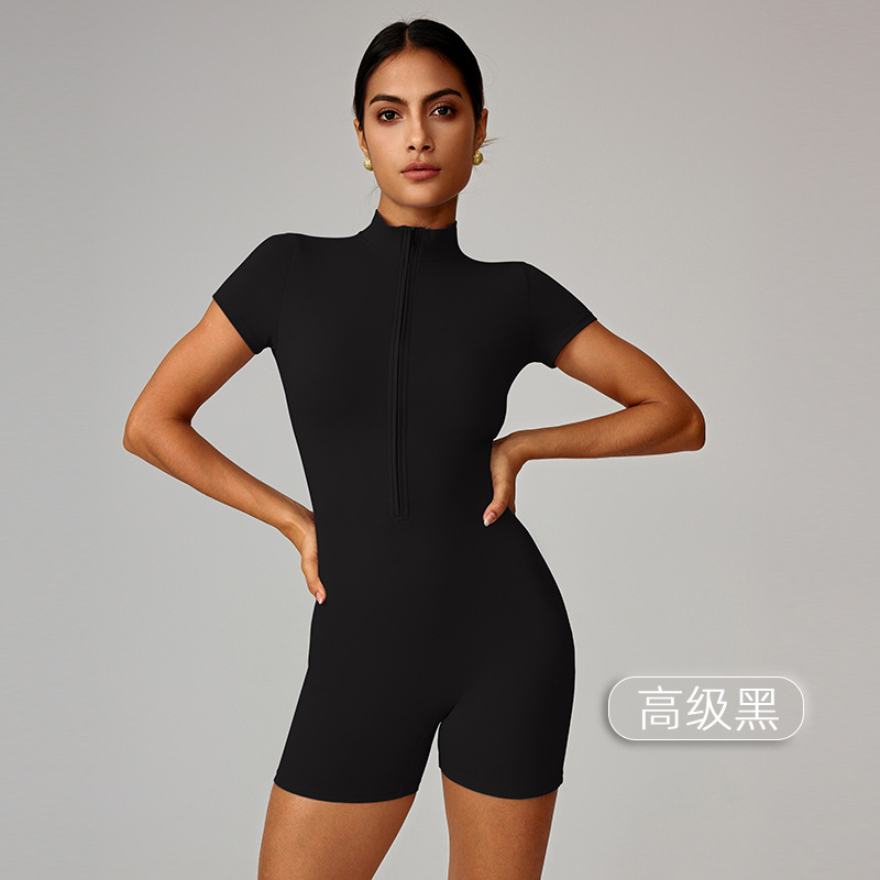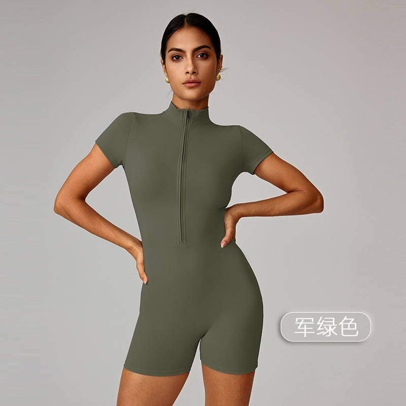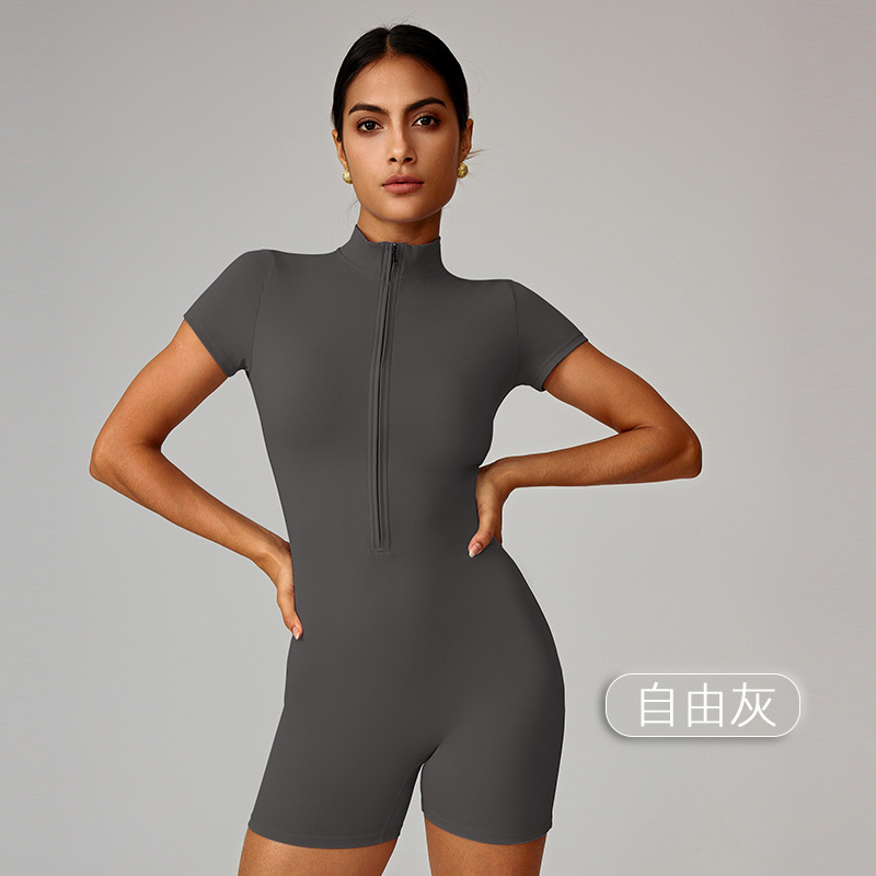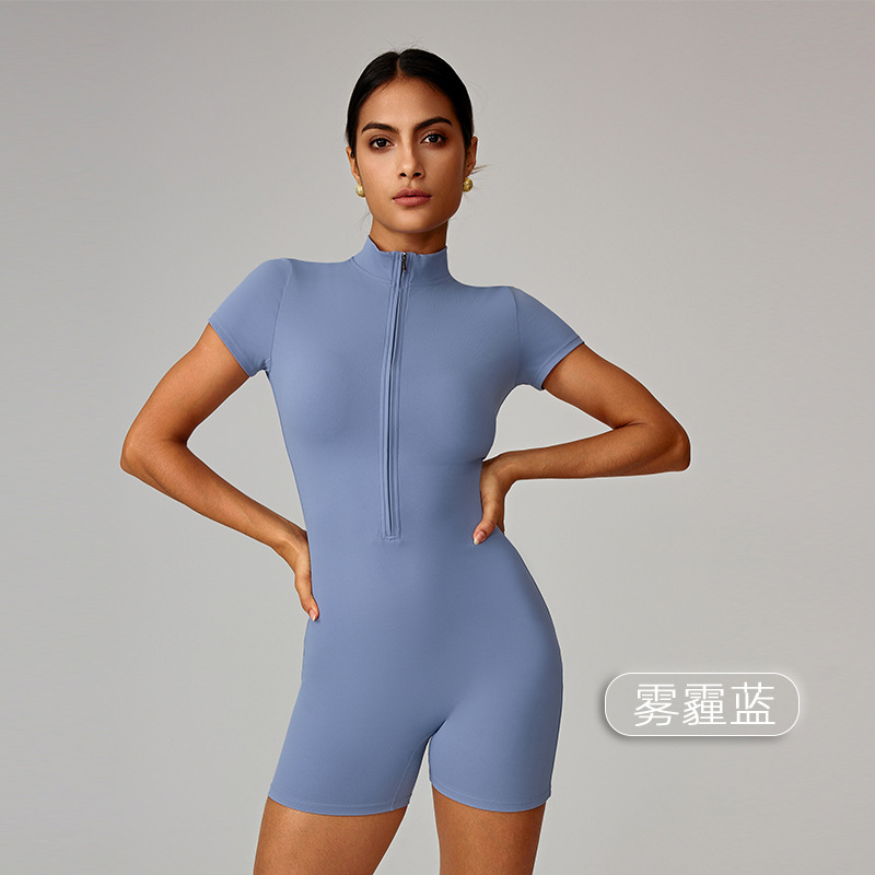 국경을 넘는 유럽 및 미국 여름용 지퍼 반팔 요가 점프수트 여성 댄스 피트니스 타이트 스포츠 점프수트 8294