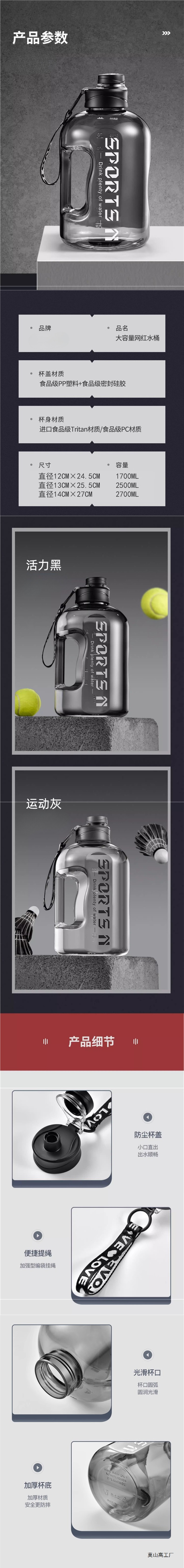 트라이탄 톤 버킷 대용량 워터컵 남성용 스포츠 피트니스 덴던 주전자 고온 방지 덴던 버킷 배꼽 컵스토어 가기
