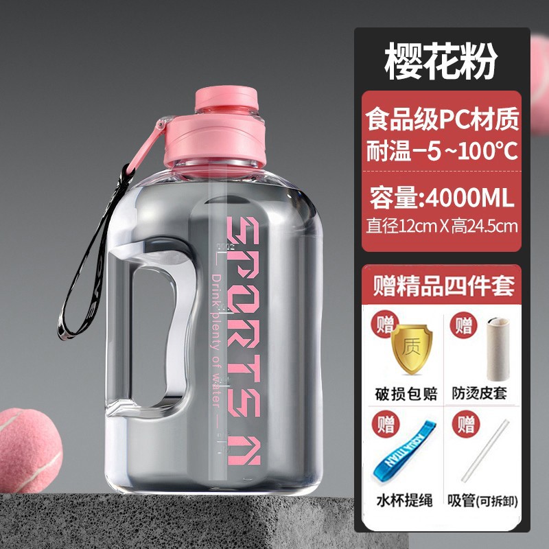 • PC재질 - 4000ML 핑크 (끓는 물 담을 수 있음 - 빨대 + 리프팅 로프 + 가죽 케이스 포함)