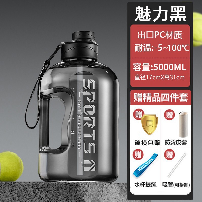 • PC재질 - 5000ML 검정색 (끓는 물 담을 수 있음 - 빨대 + 리프팅 로프 + 가죽 케이스 포함)