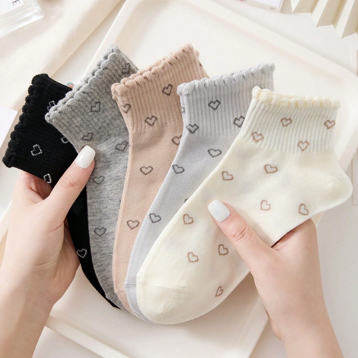 여성용 양말 여름 통기성 얕은 양말 보트 양말 일본 레이스 러브 프린트 대학 스타일 땀 흡수 양말 도매스토어 가기