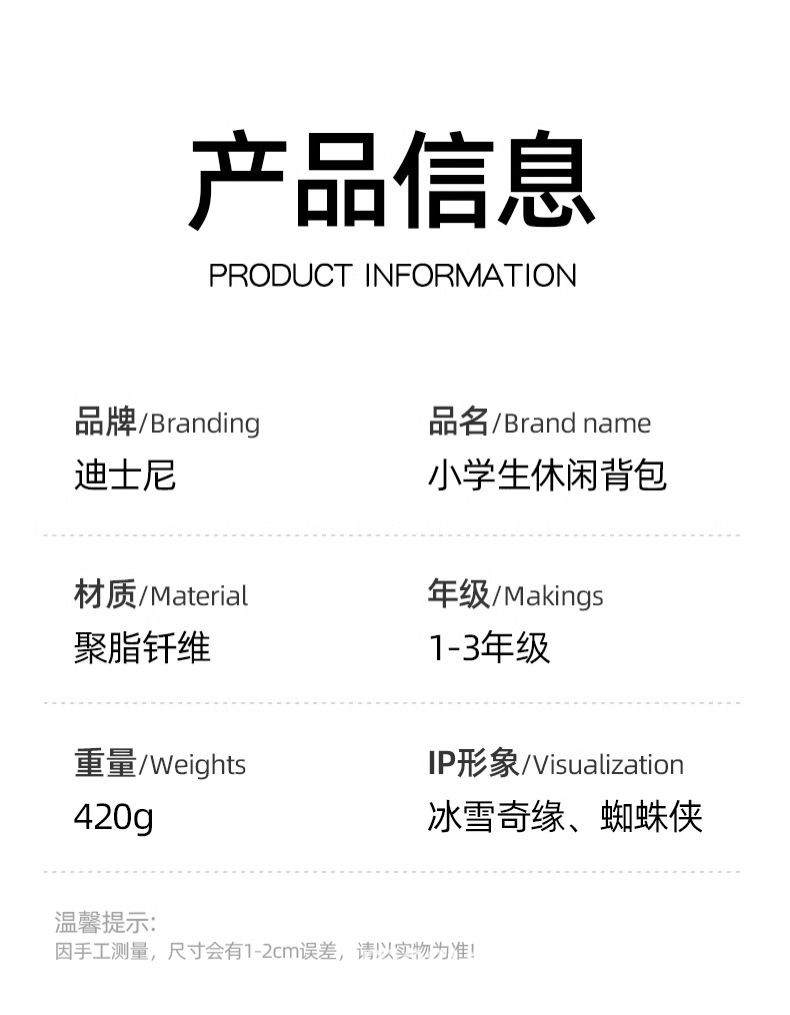디즈니 스파이더 맨 배낭 소녀 작은 어린이 학교 가방 초등 학생 미니 배낭 새로운 도매 인증