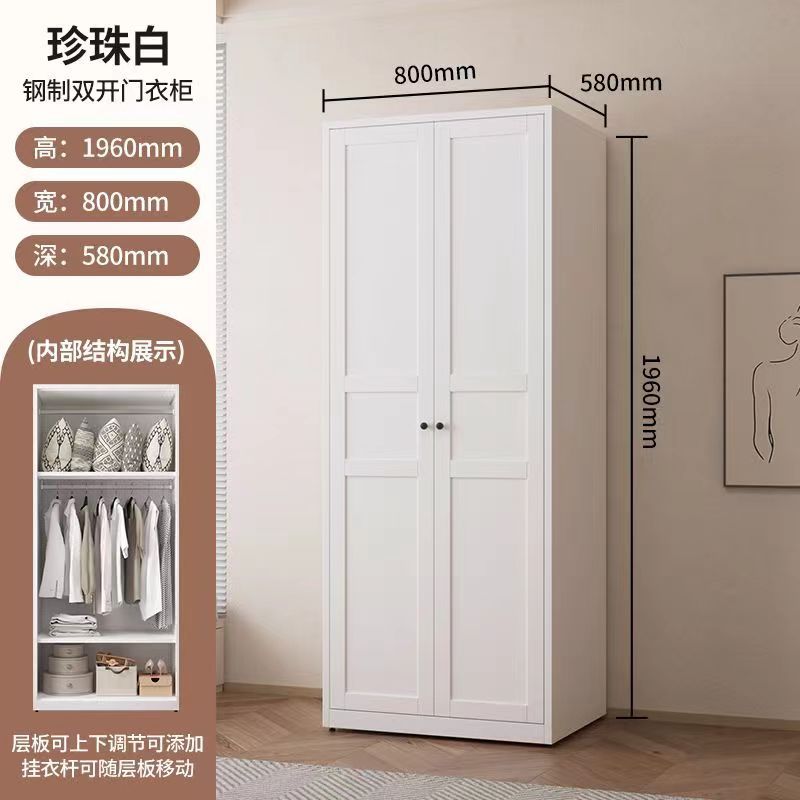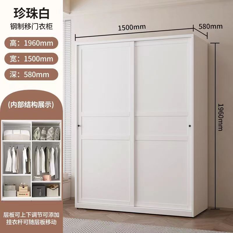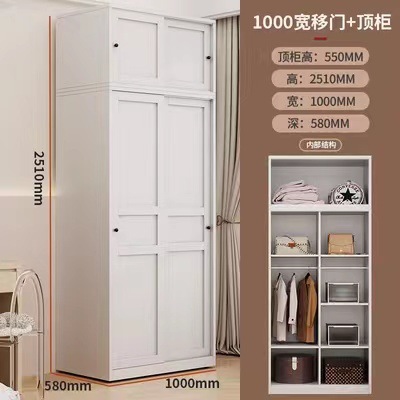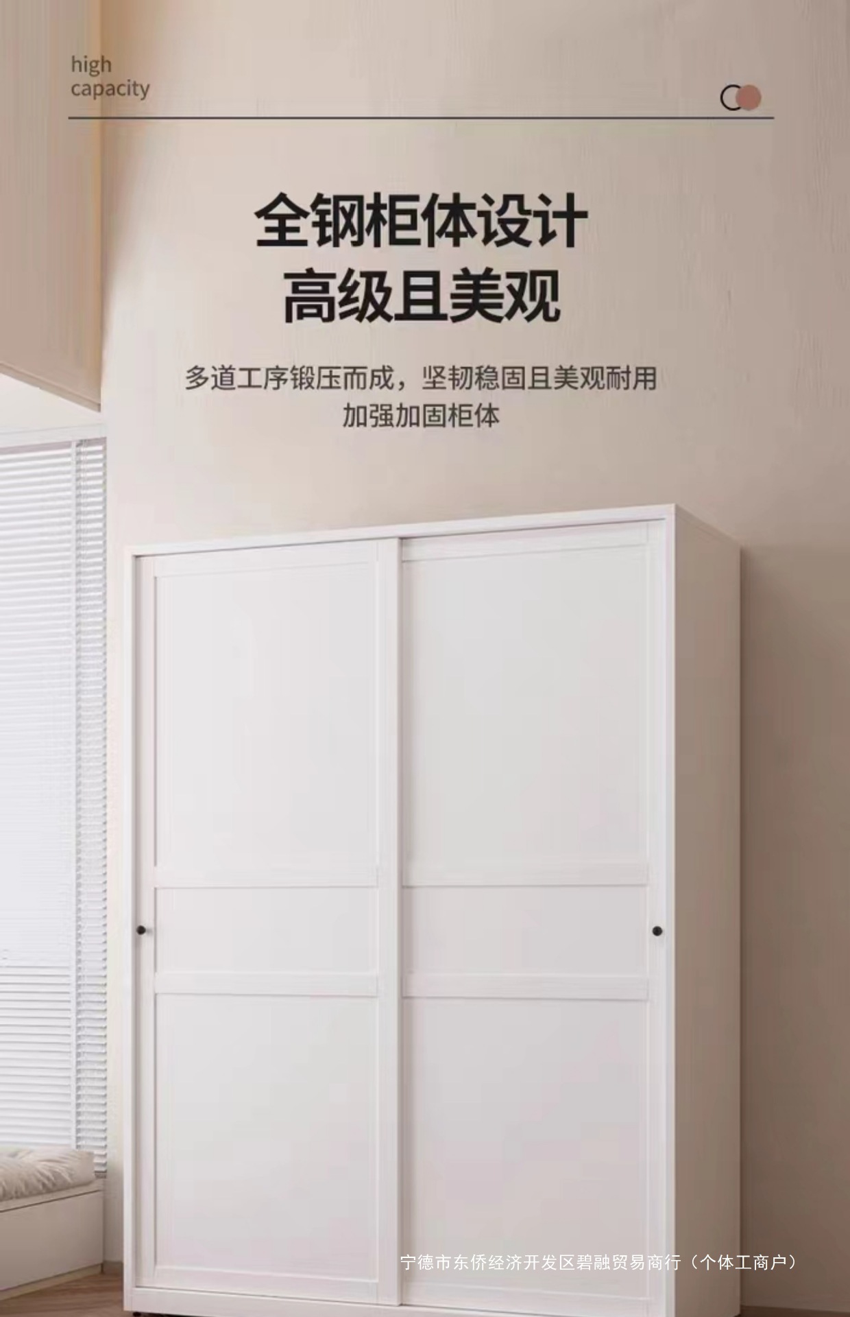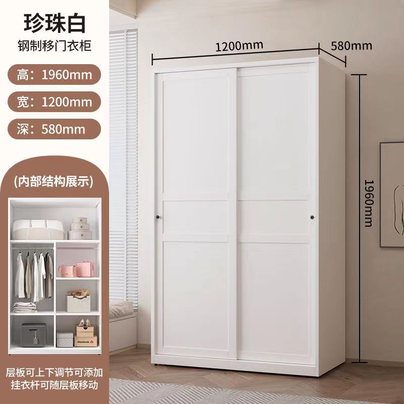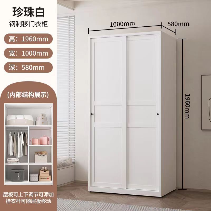 강철 라이트 럭셔리 가정용 다목적 크림 스타일 철제 옷장 포름알데히드가 없는 수납 캐비닛 슬라이딩 도어 작은 아파트 옷장