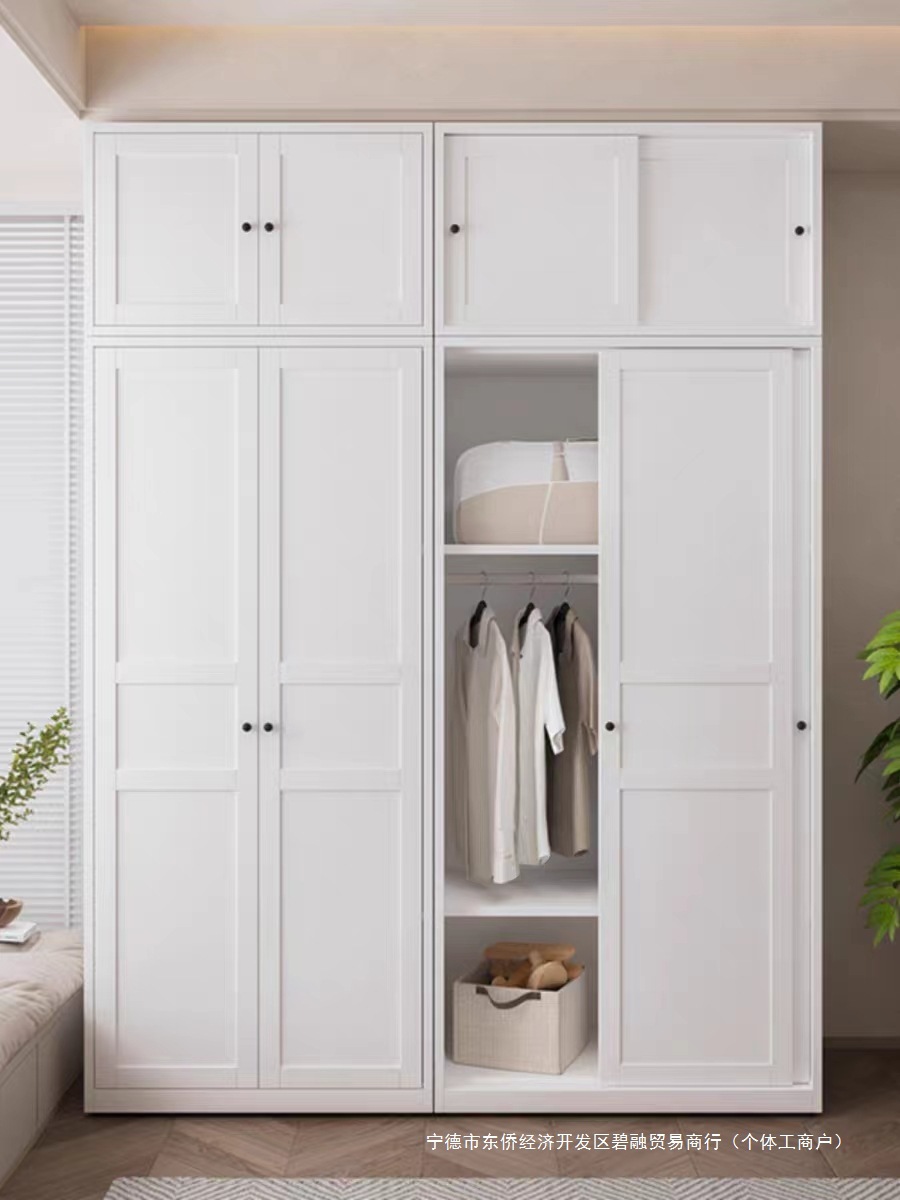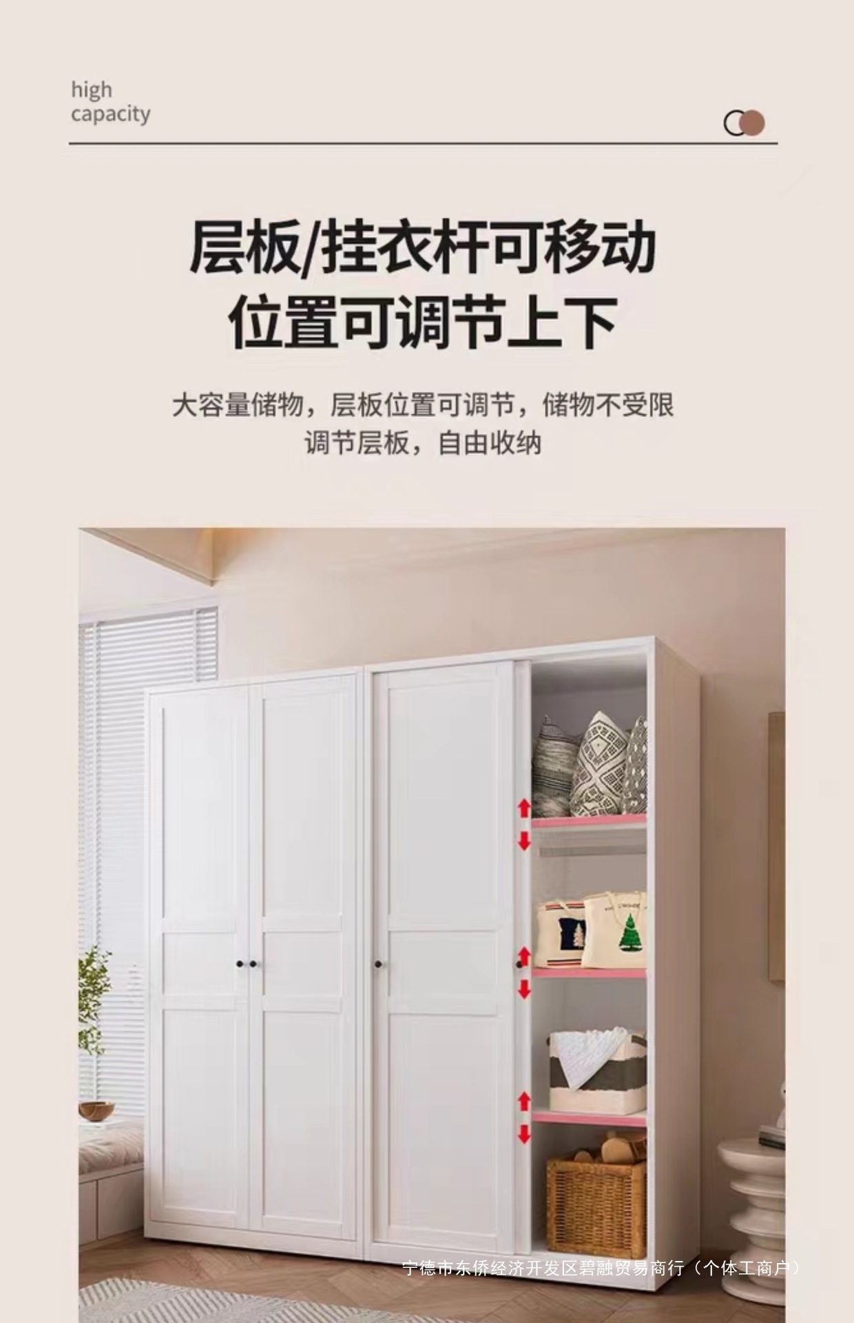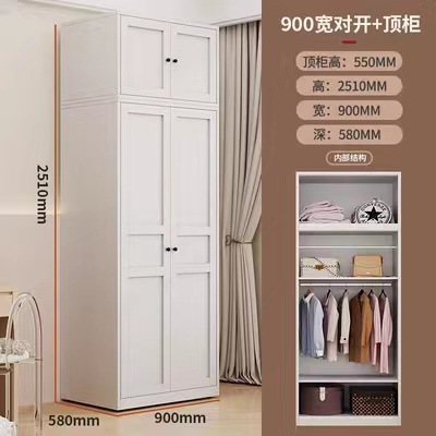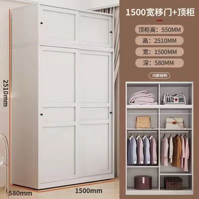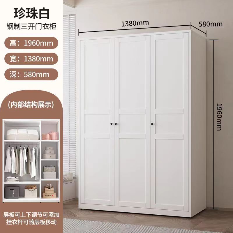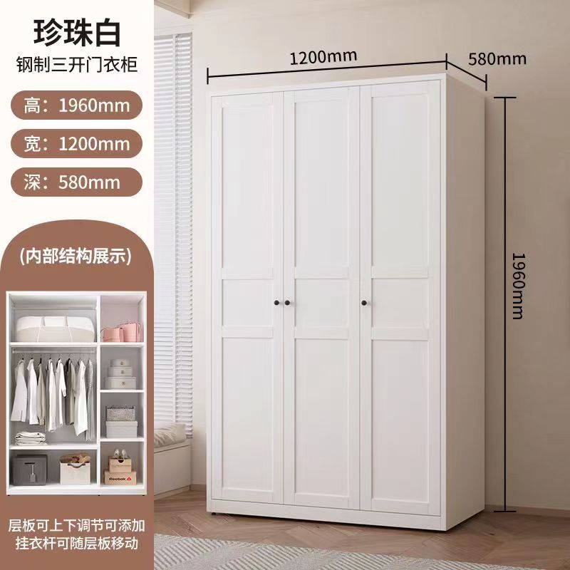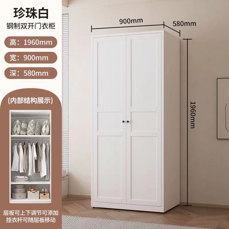 강철 라이트 럭셔리 가정용 다목적 크림 스타일 철제 옷장 포름알데히드가 없는 수납 캐비닛 슬라이딩 도어 작은 아파트 옷장