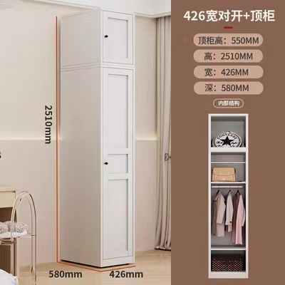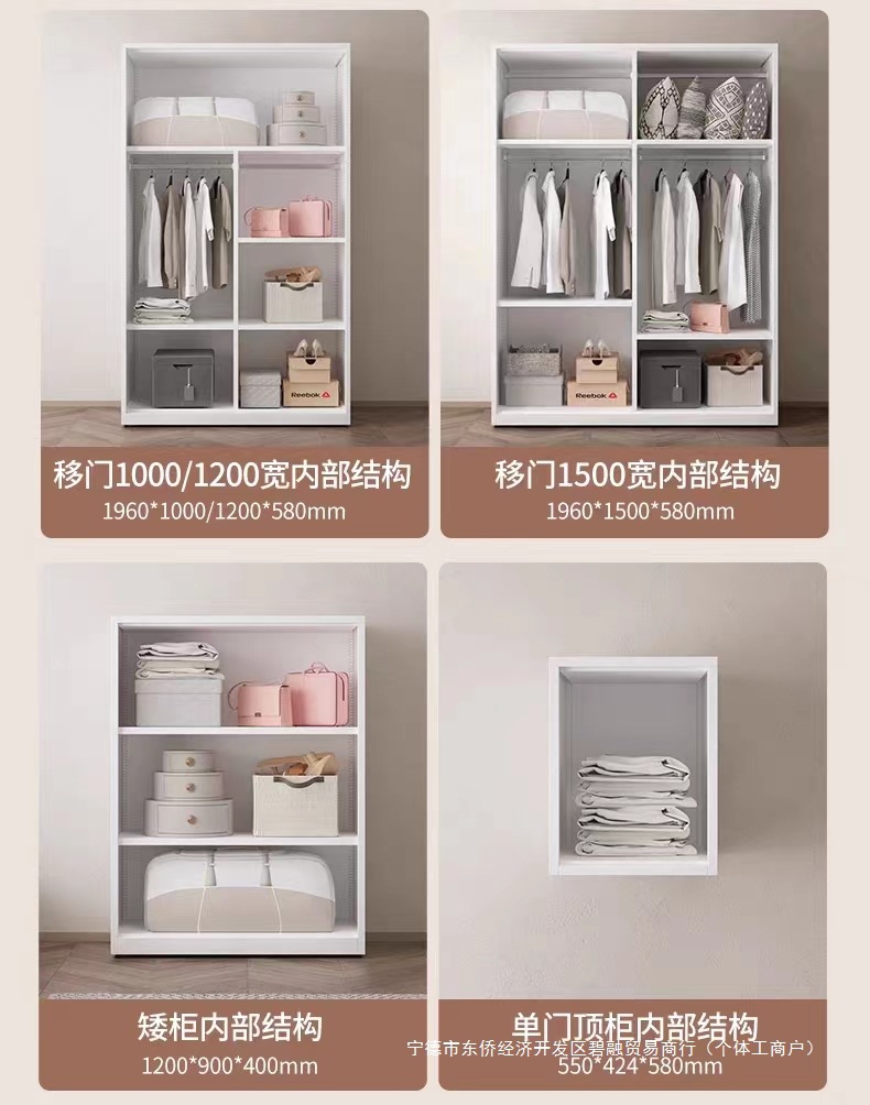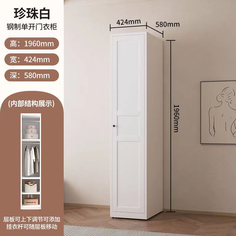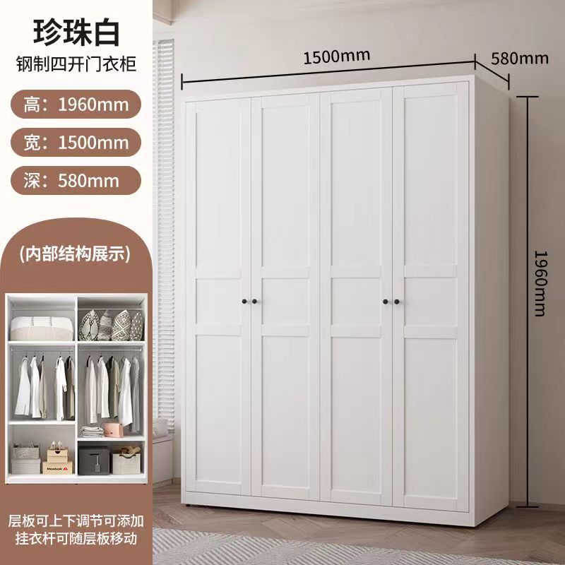 강철 라이트 럭셔리 가정용 다목적 크림 스타일 철제 옷장 포름알데히드가 없는 수납 캐비닛 슬라이딩 도어 작은 아파트 옷장스토어 가기