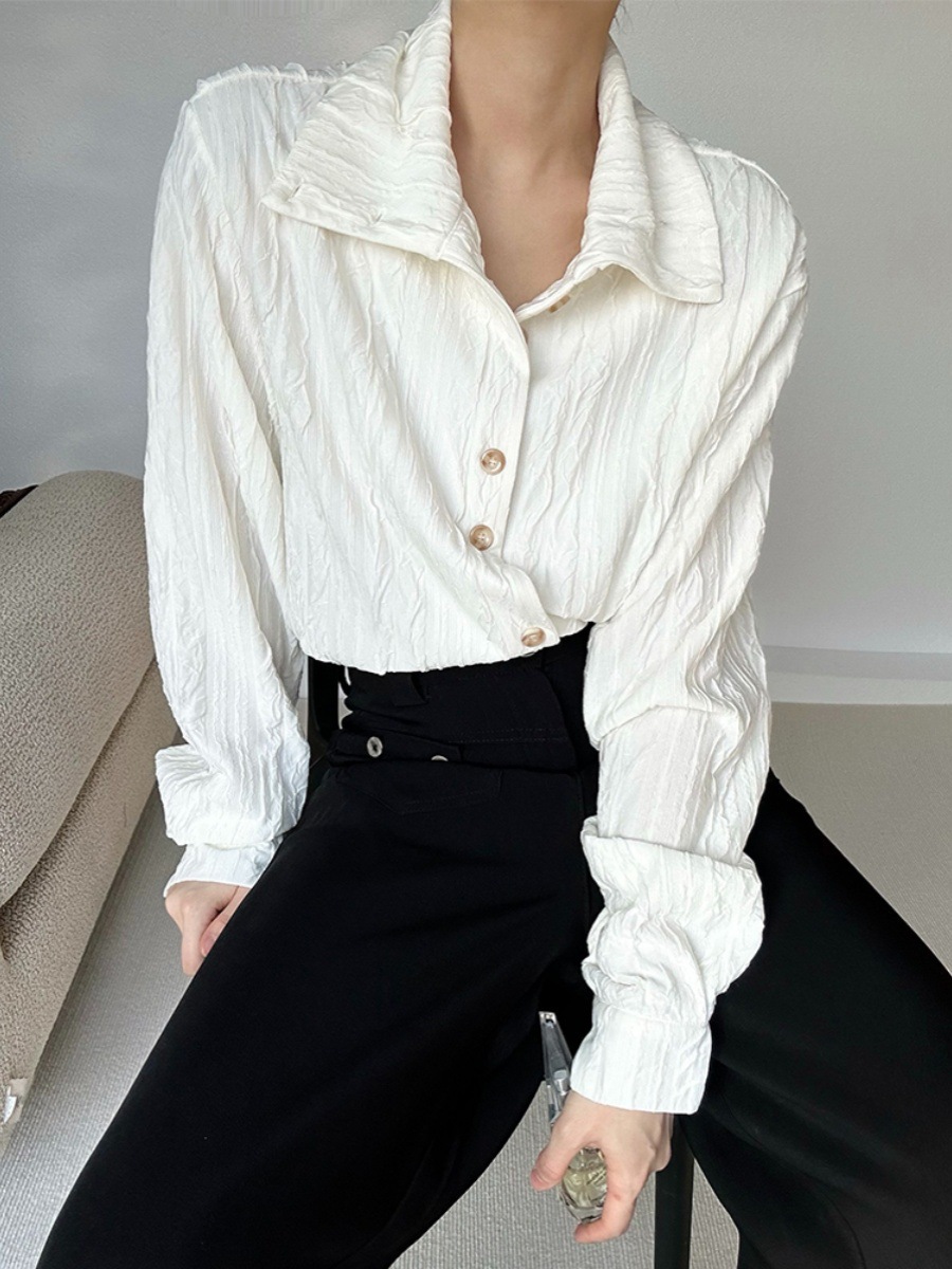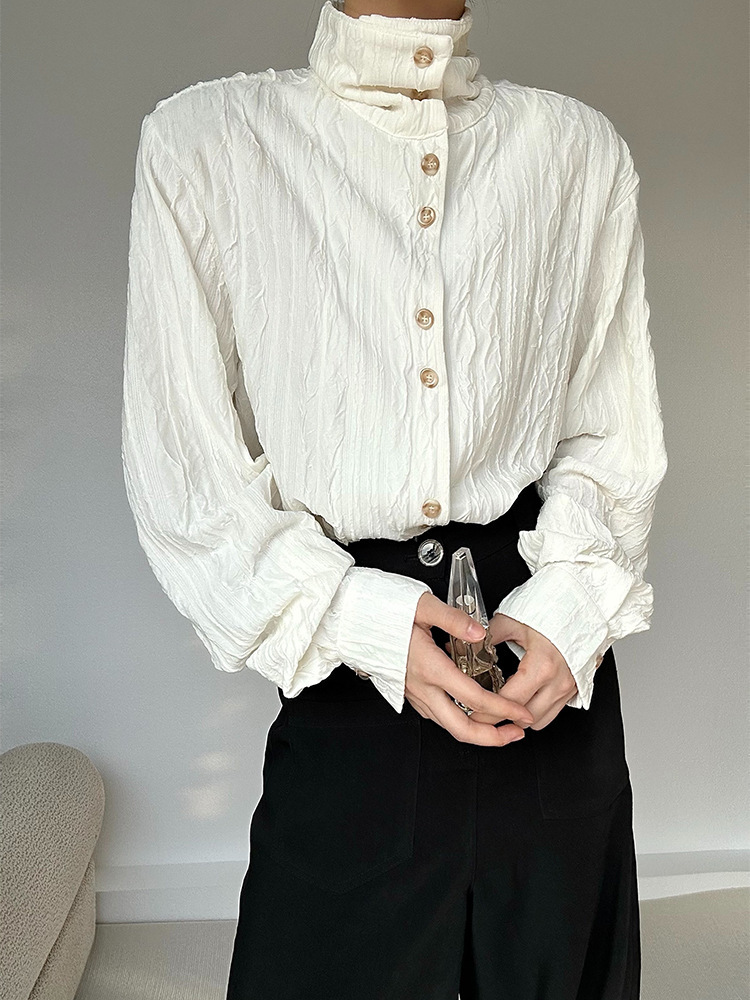 봄, 가을 남성용 프렌치 레트로 스탠드 칼라 긴팔 셔츠, 고급 주름, 게으른 스타일, 캐주얼하고 멋진 터틀넥 셔츠스토어 가기