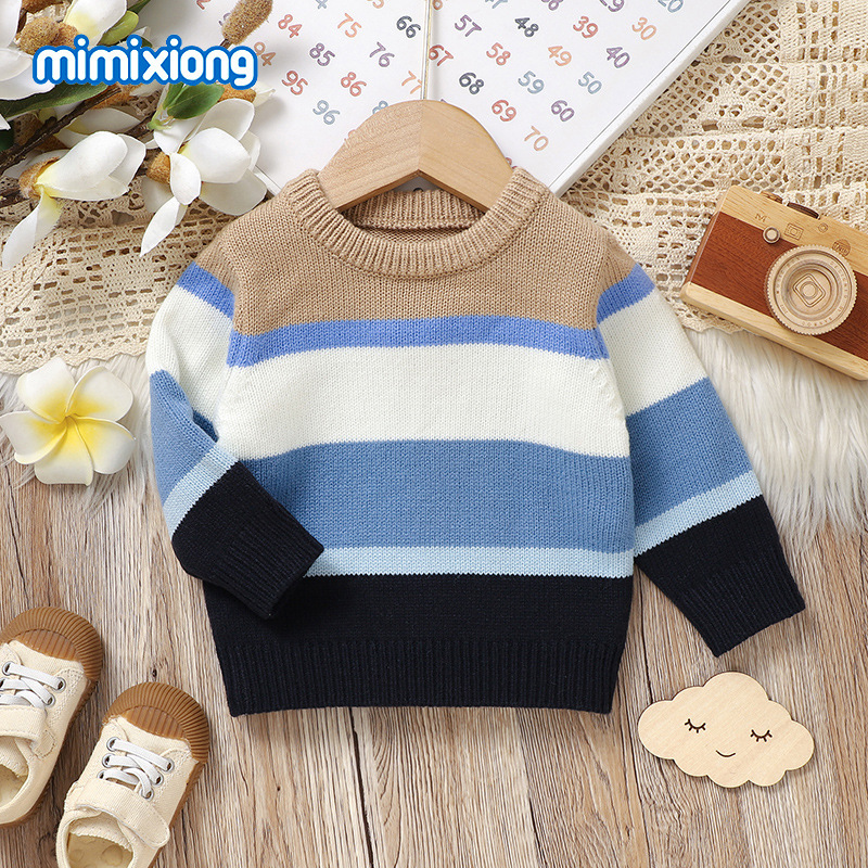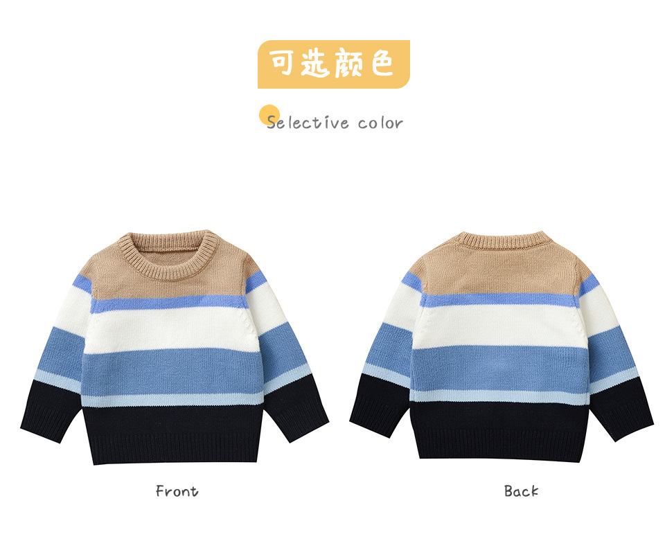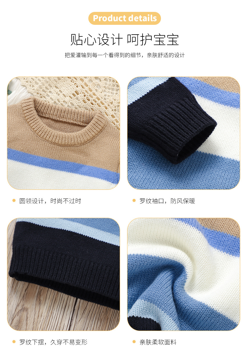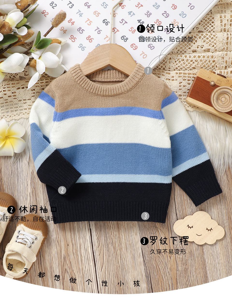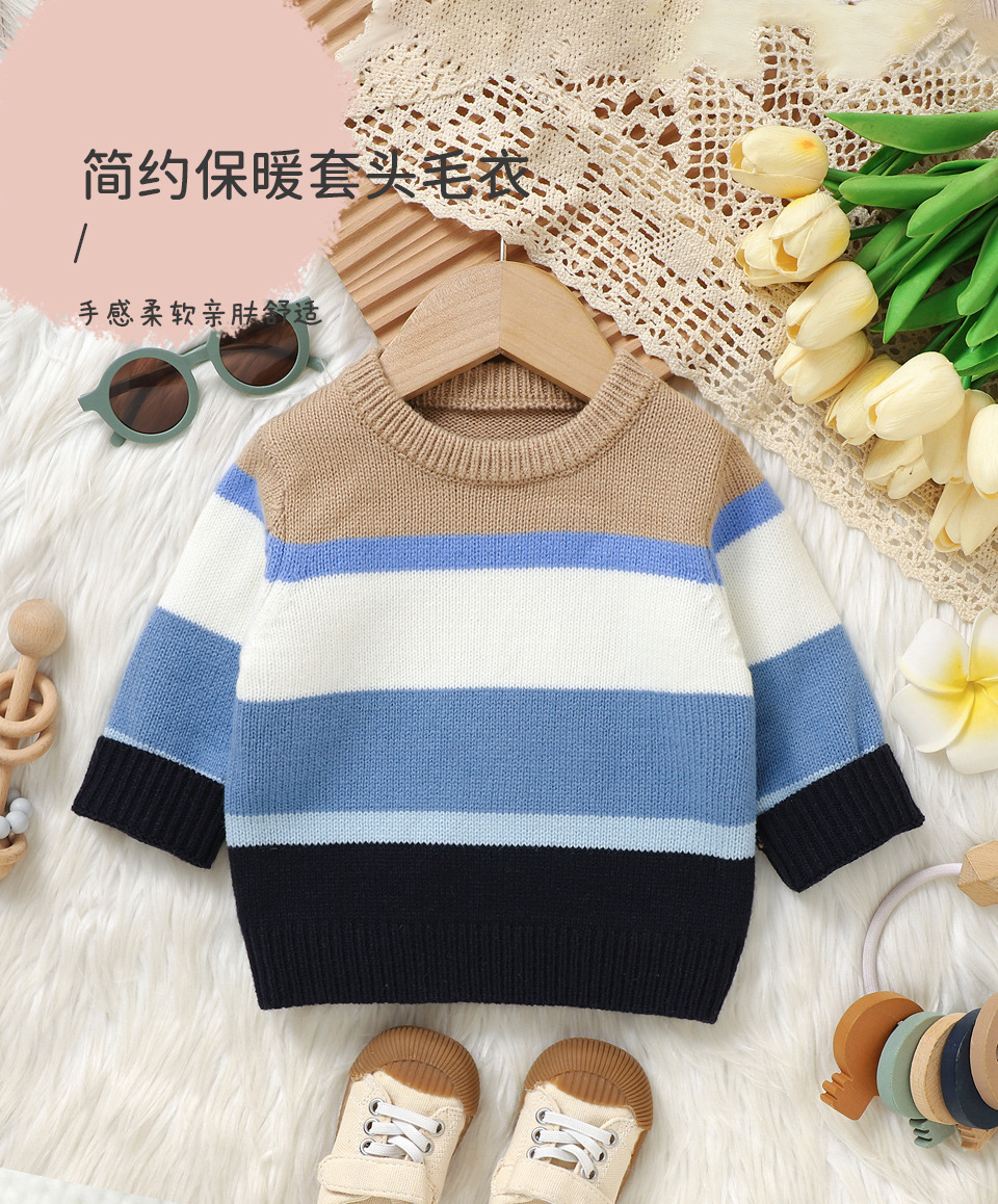 Ins 핫 세일 새로운 베이비 니트 스트라이프 컬러 블록 라운드 넥 탑 스웨터