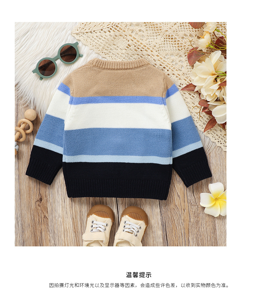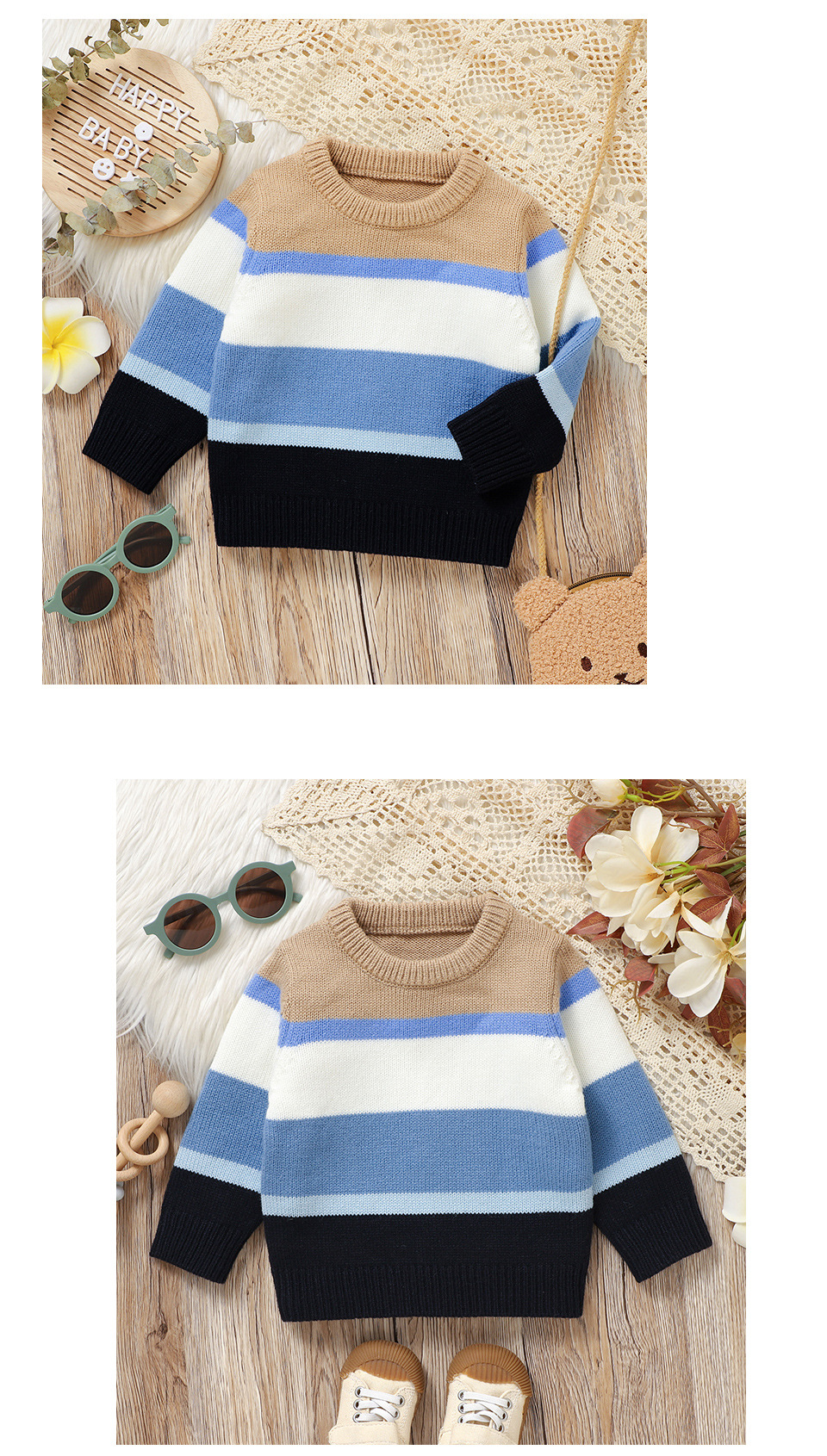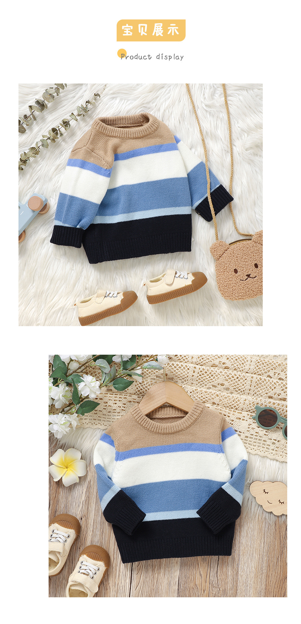 Ins 핫 세일 새로운 베이비 니트 스트라이프 컬러 블록 라운드 넥 탑 스웨터스토어 가기