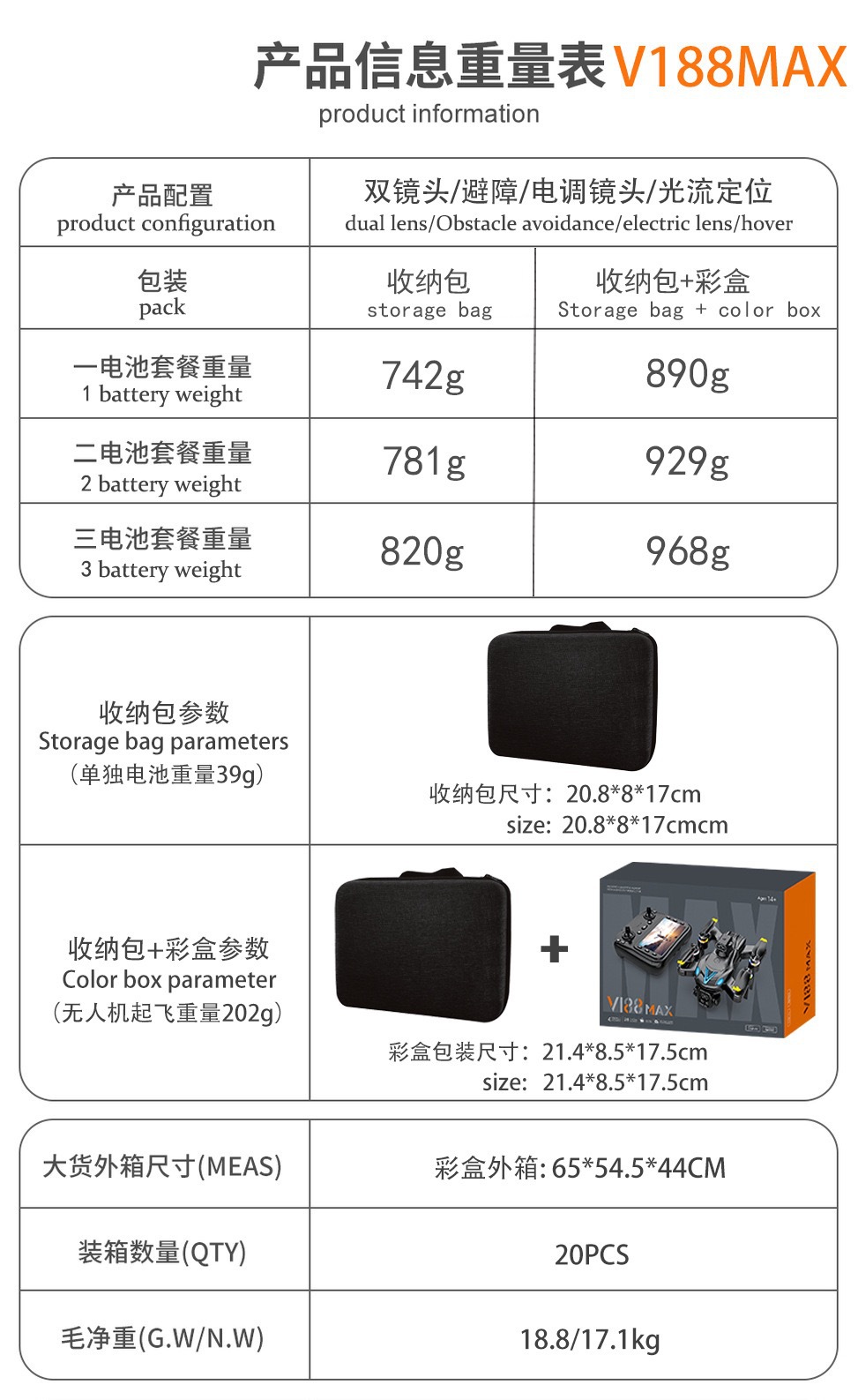국경 간 새로운 V188max 브러시리스 드론 8K HD 항공 사진 원격 제어 항공기 광학 흐름 포지셔닝 접이식 항공기
